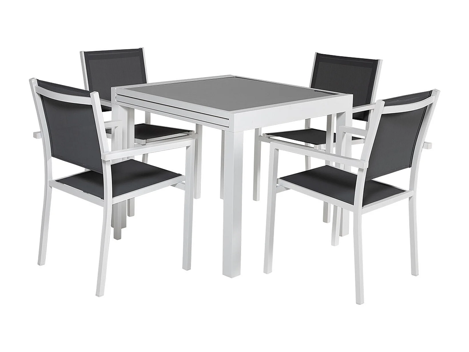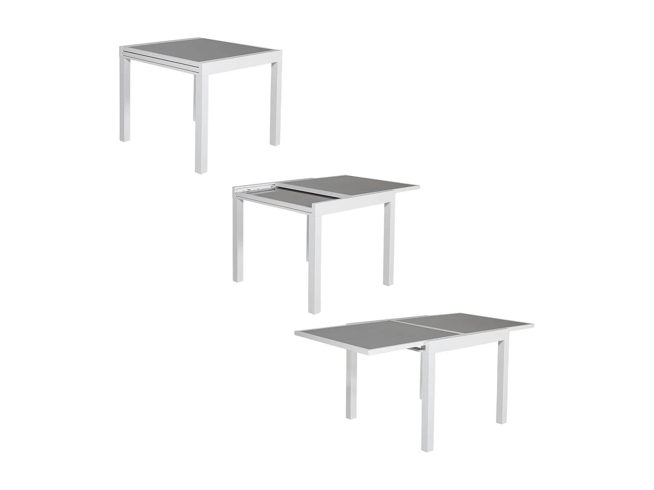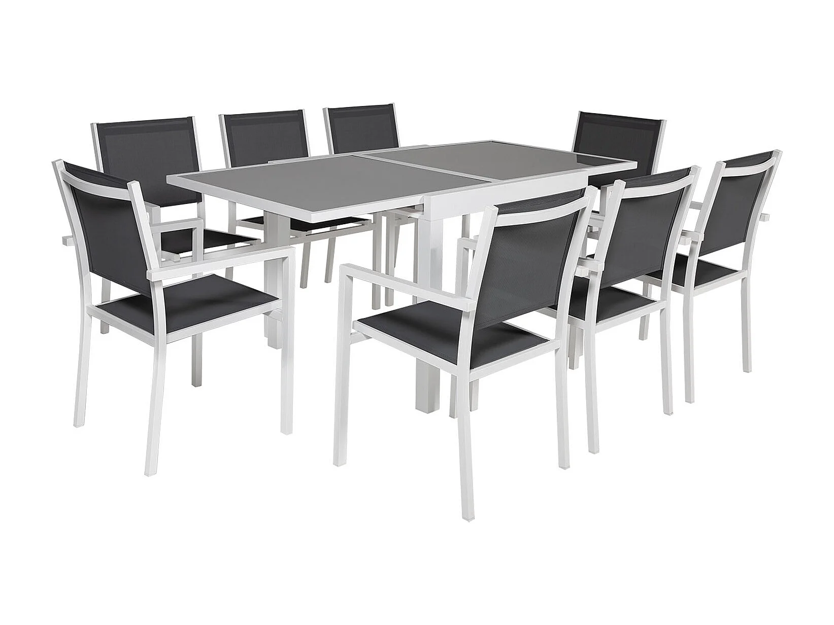 LAMPEDUSA grijs textilene verlengbare tuinset 8 zitplaatsen - wit aluminium