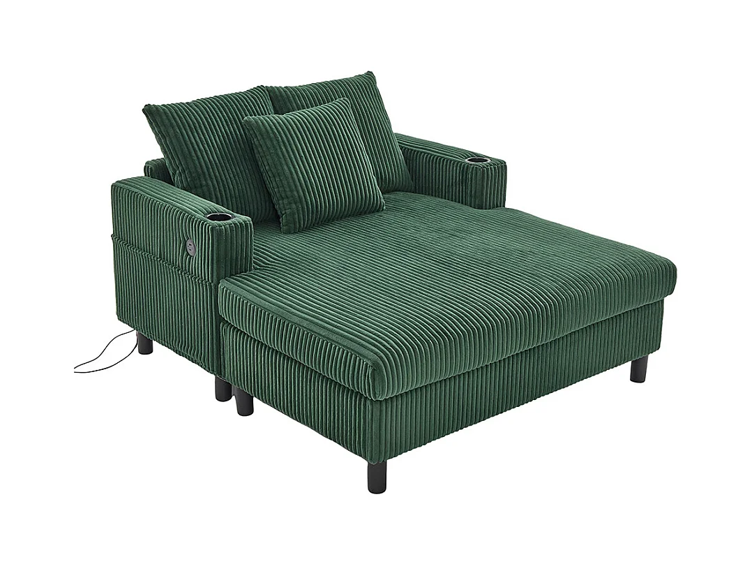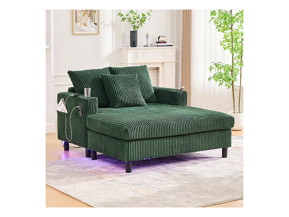Lange zachte fauteuil met bekerhouders USB-poorten en geïntegreerde ledverlichting voor in de woonkamer slaapkamer of veranda smaragdgroen