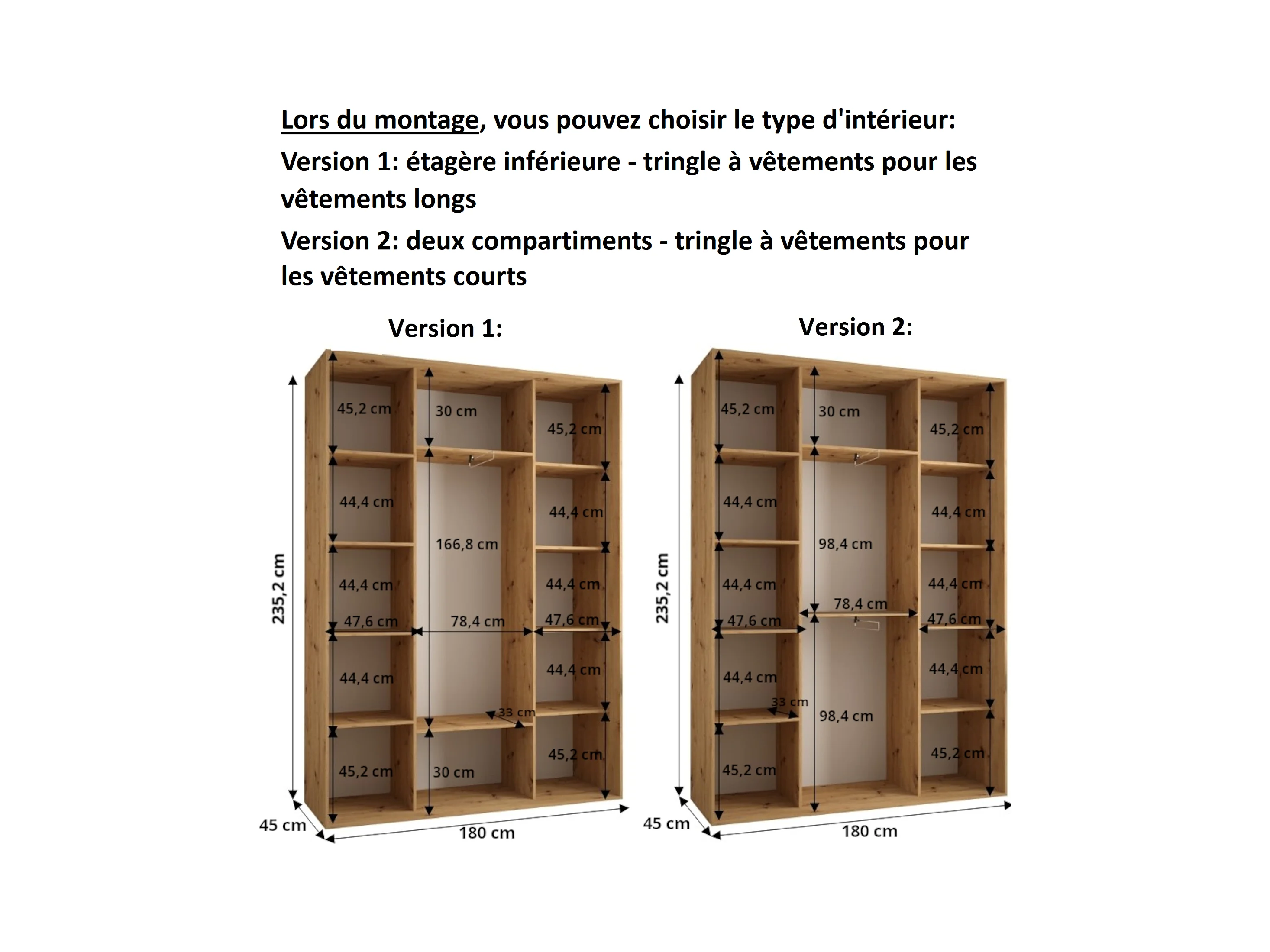LANKO 2 KLEDINGKAST MET SCHUIFDEUREN 235,2/180/45 3 deuren (zwart/zwart)