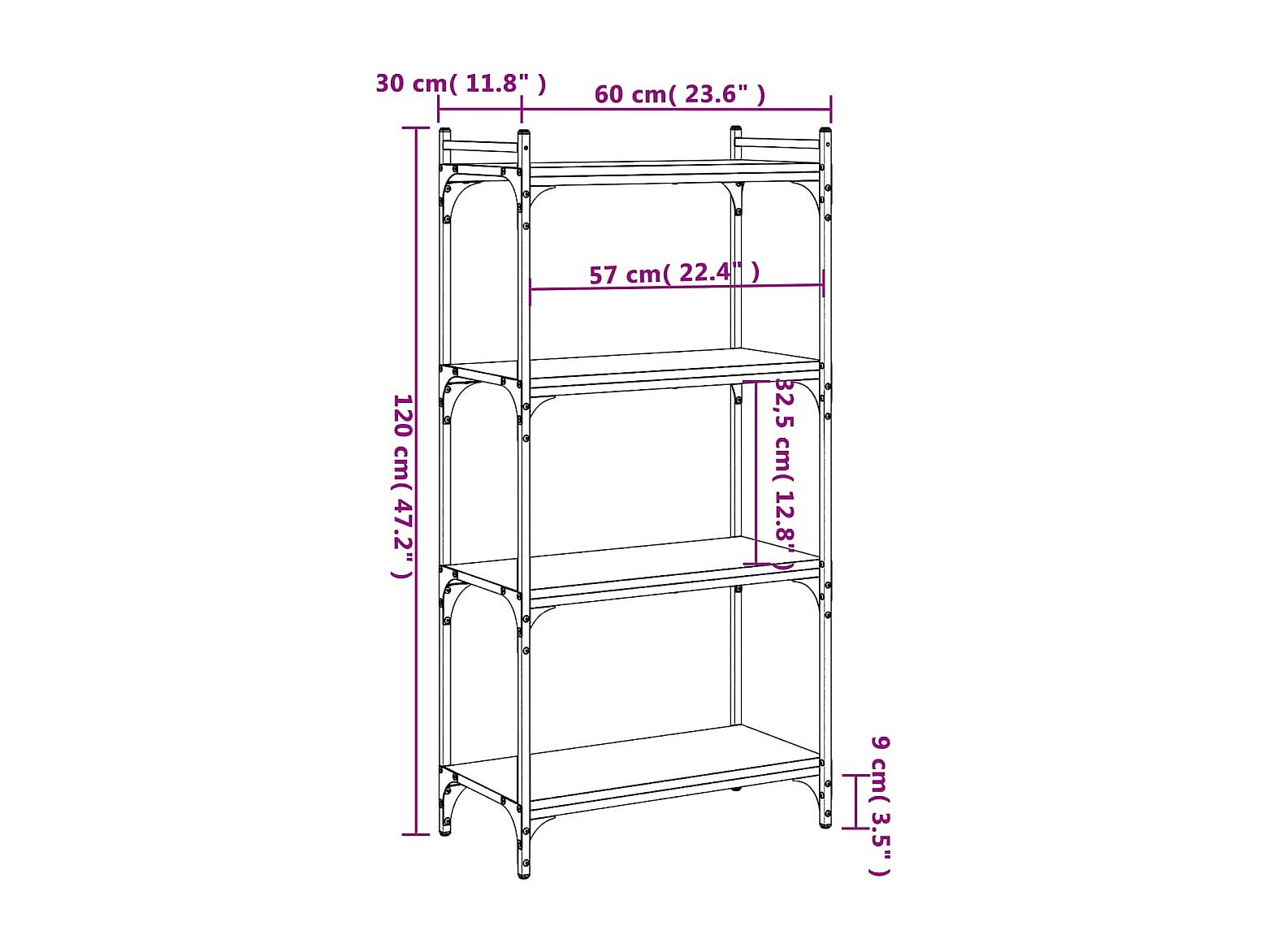 Lars Boekenkast 4-laags 60x30x120 cm bewerkt hout grijs sonoma eiken