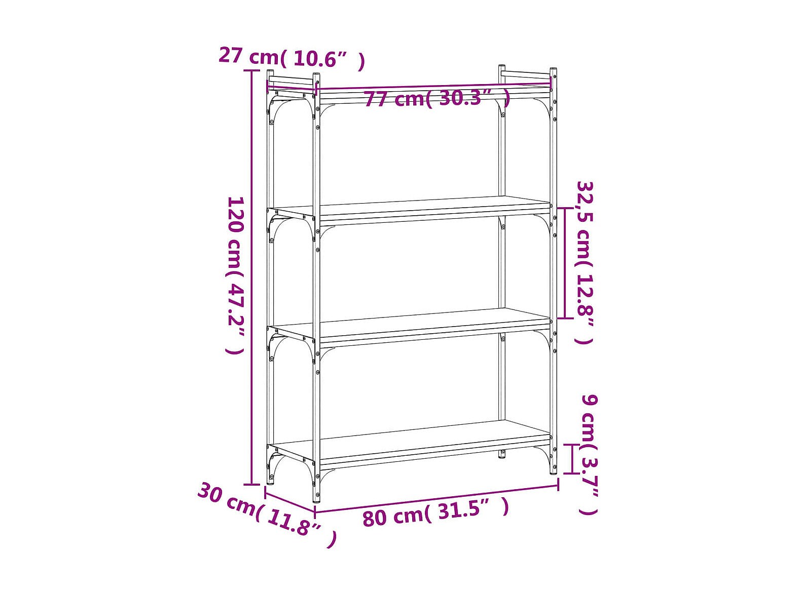 Lars Boekenkast 4-laags 80x30x120 cm bewerkt hout zwart