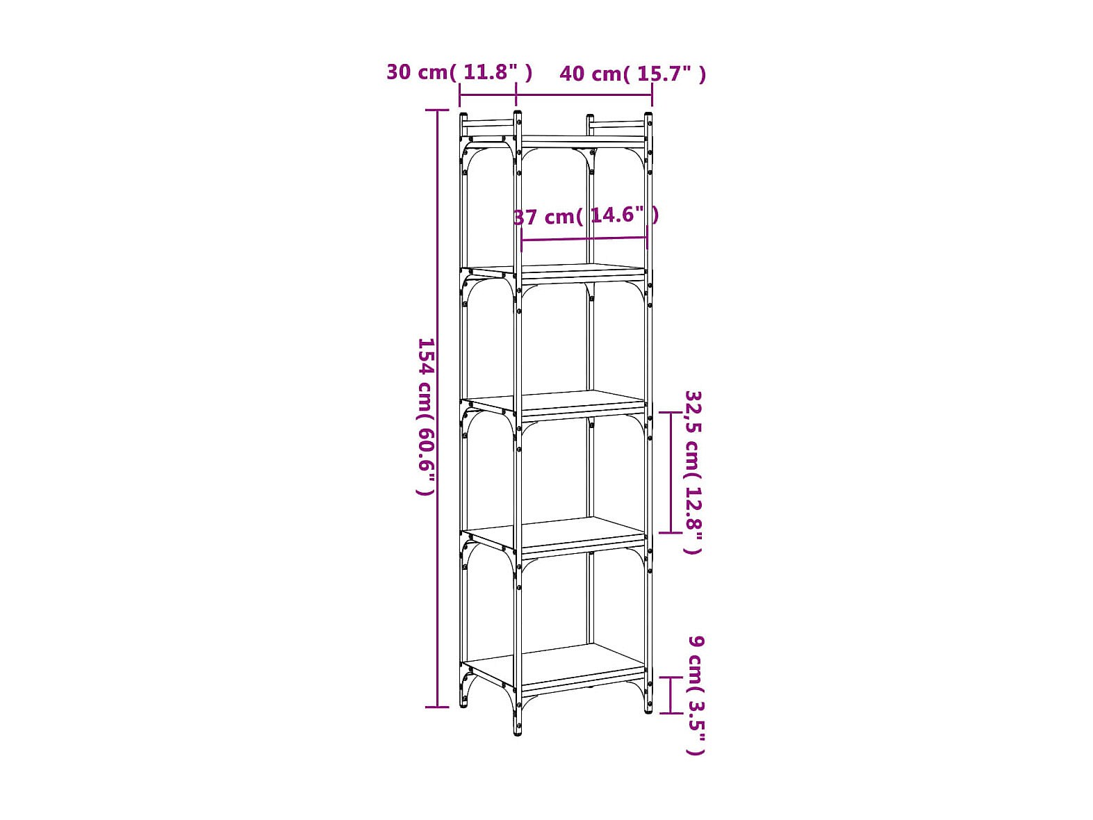Lars Boekenkast 5-laags 40x30x154 cm bewerkt hout grijs sonoma eiken