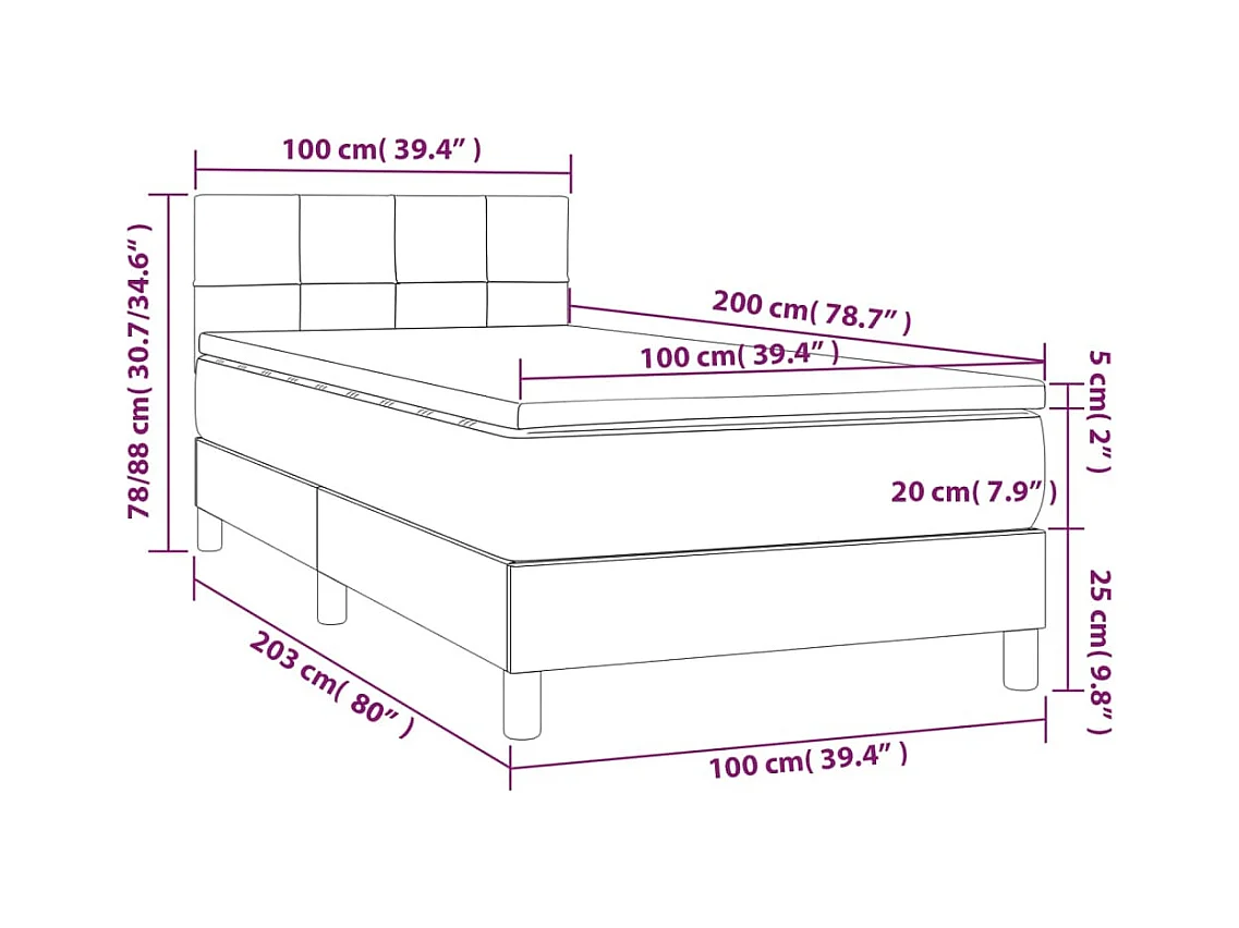 Boxspringbed met matras Wit en crème 100 x 200 cm stof