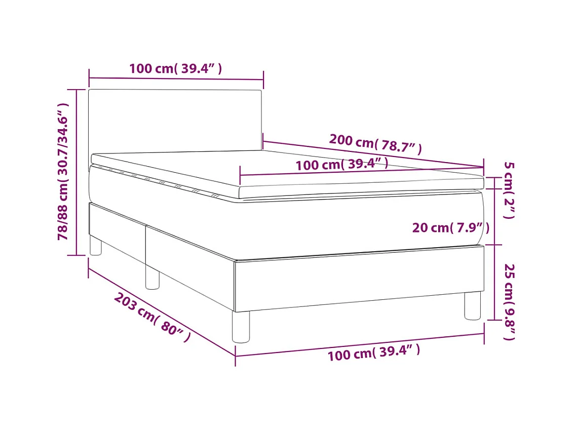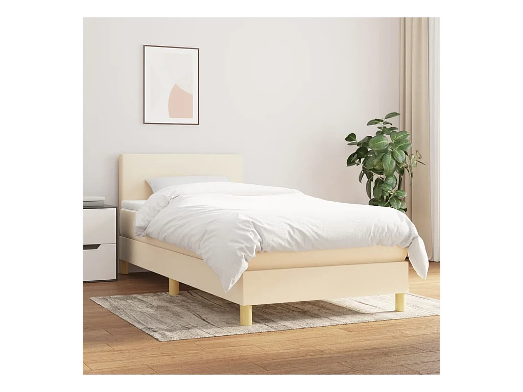 Boxspringbed met matras Wit en crème 100 x 200 cm stof