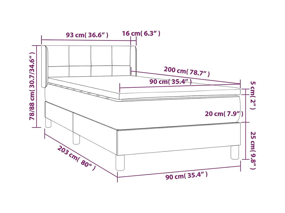 Boxspringbed met matras Lichtgrijs 90 x 200 cm stof