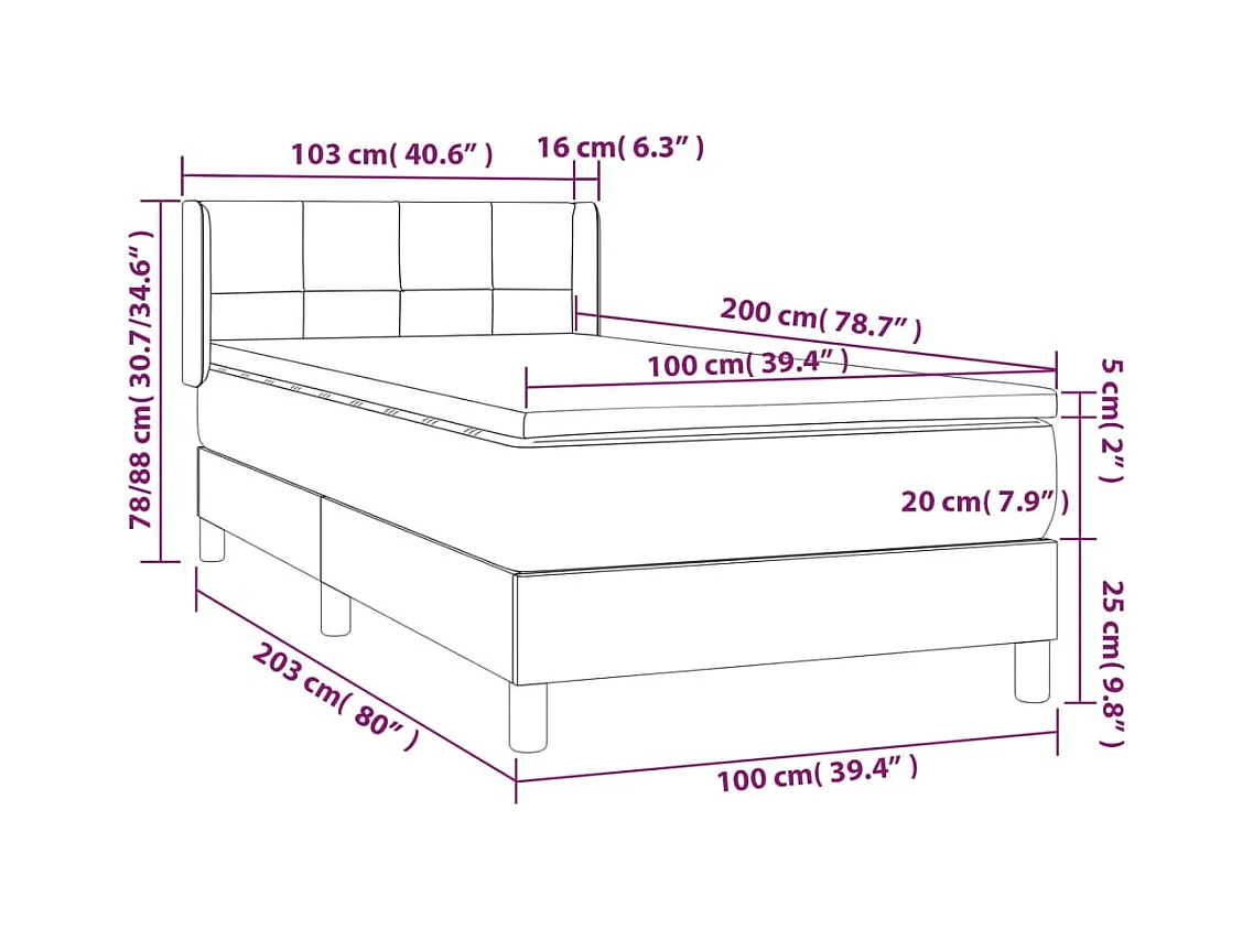 Lattenbodem met matras Donkergrijs 100x200cm Stof