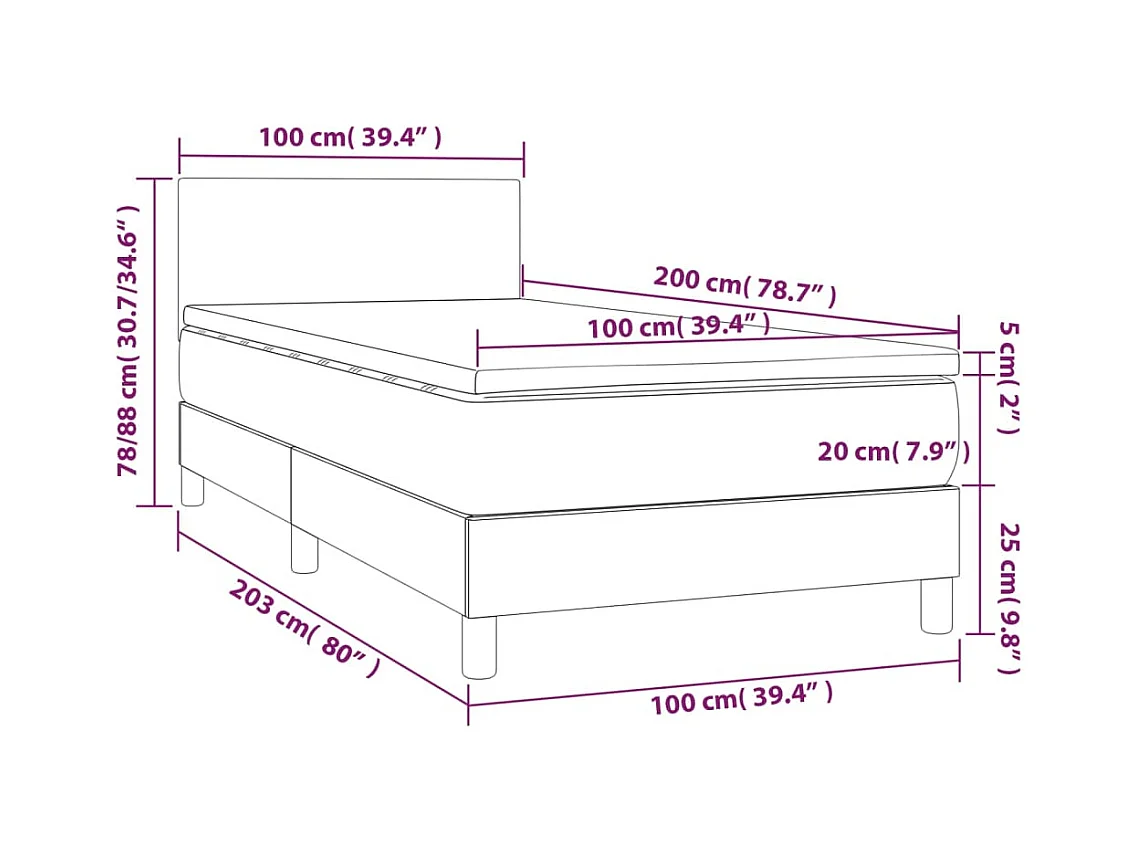 Lattenbodem met matras Donkergrijs 100x200cm Stof