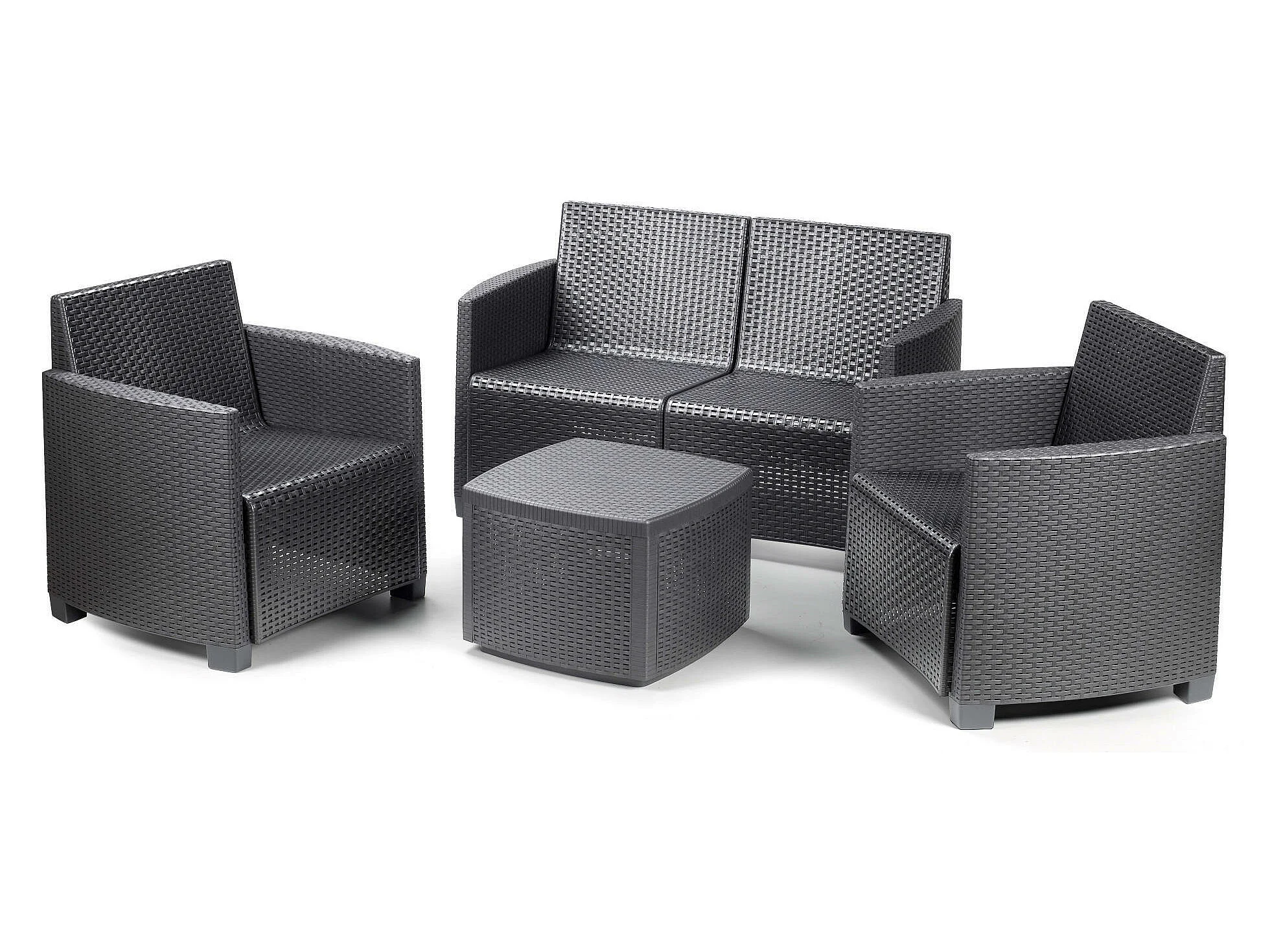 Lecce outdoor loungeset, Tuinset met kussens bestaande uit 2 fauteuils, 1 bank en 1 salontafel, Indoor lounge, 100% Made in Italy, 128x67h77 cm, Antraciet