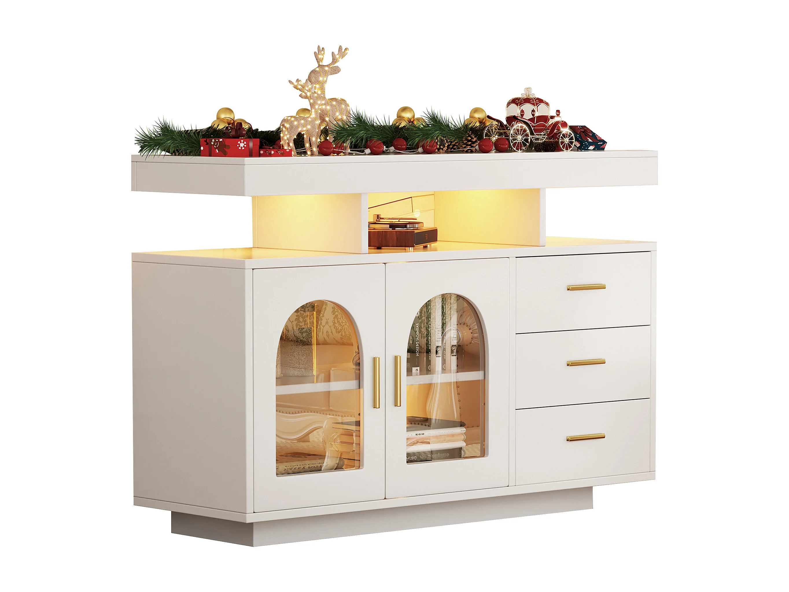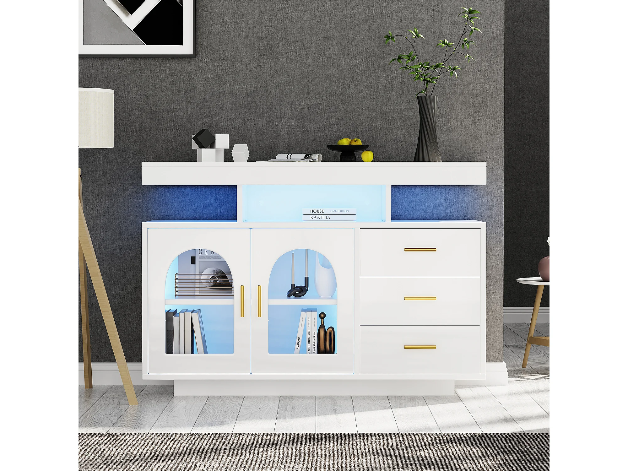 LED eetkamer dressoir met 2 deuren, 3 lades en open opbergruimte - hout - wit (120x40x80 cm)