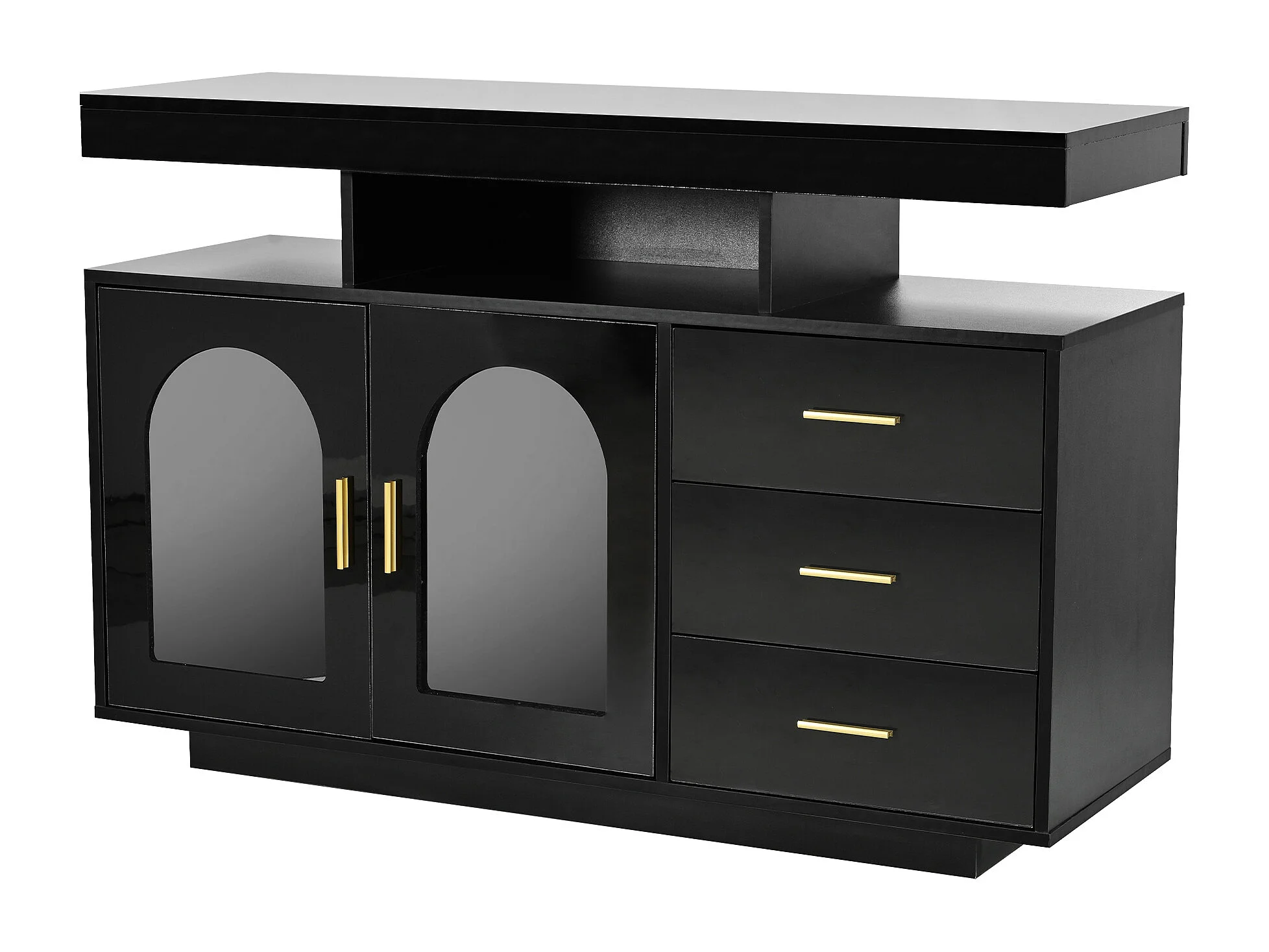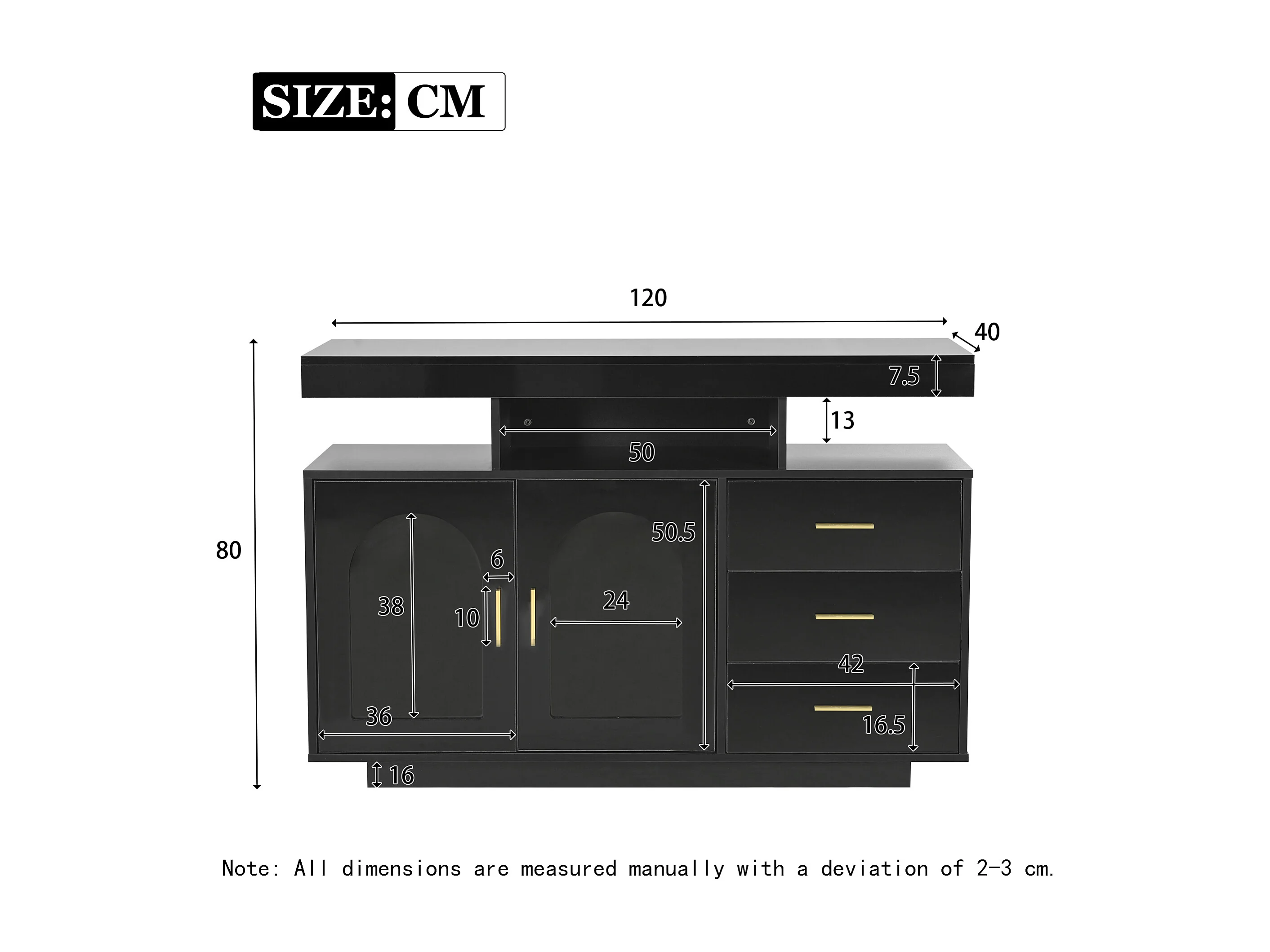 LED eetkamer dressoir met 2 deuren, 3 lades en open opbergruimte - hout - zwart (120x40x80 cm)