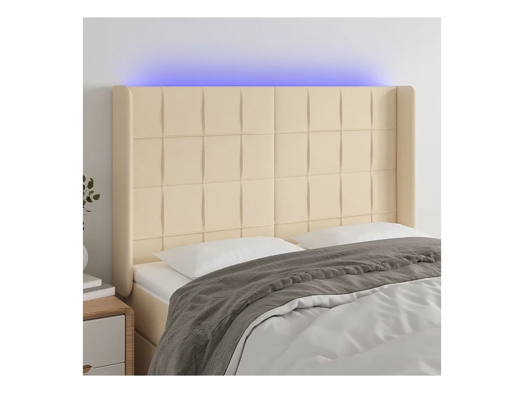 LED Hoofdbord Crème 147x16x118/128 cm Stof
