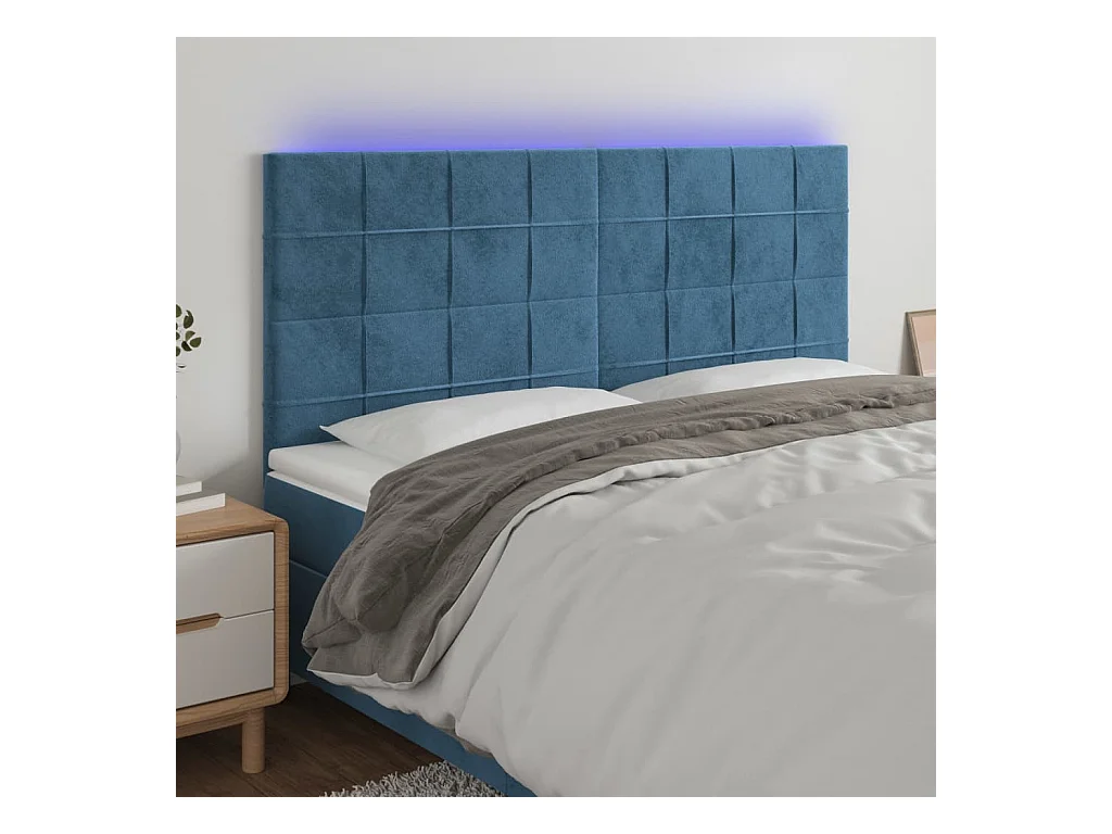 LED Hoofdbord Donkerblauw 160x5x118/128 cm Fluweel