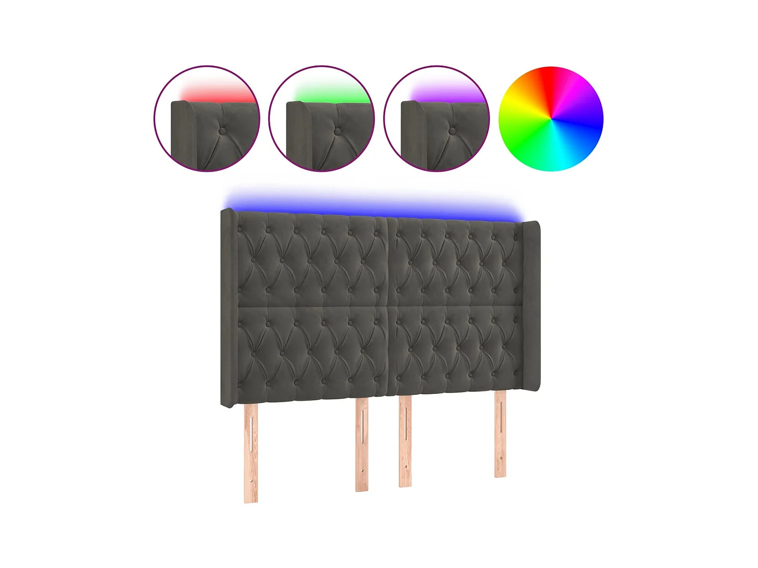 LED Hoofdbord Donkergrijs 147x16x118/128 cm Fluweel