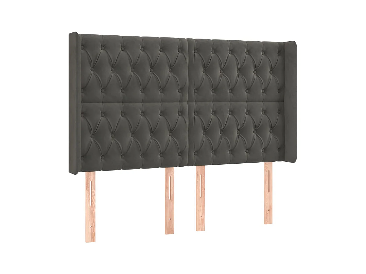Hoofdbord met vleugels Donkergrijs 147x16x118/128 cm Fluweel