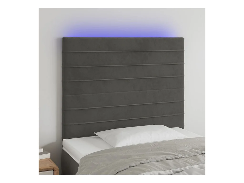 LED Hoofdbord Donkergrijs 90x5x118/128 cm Fluweel