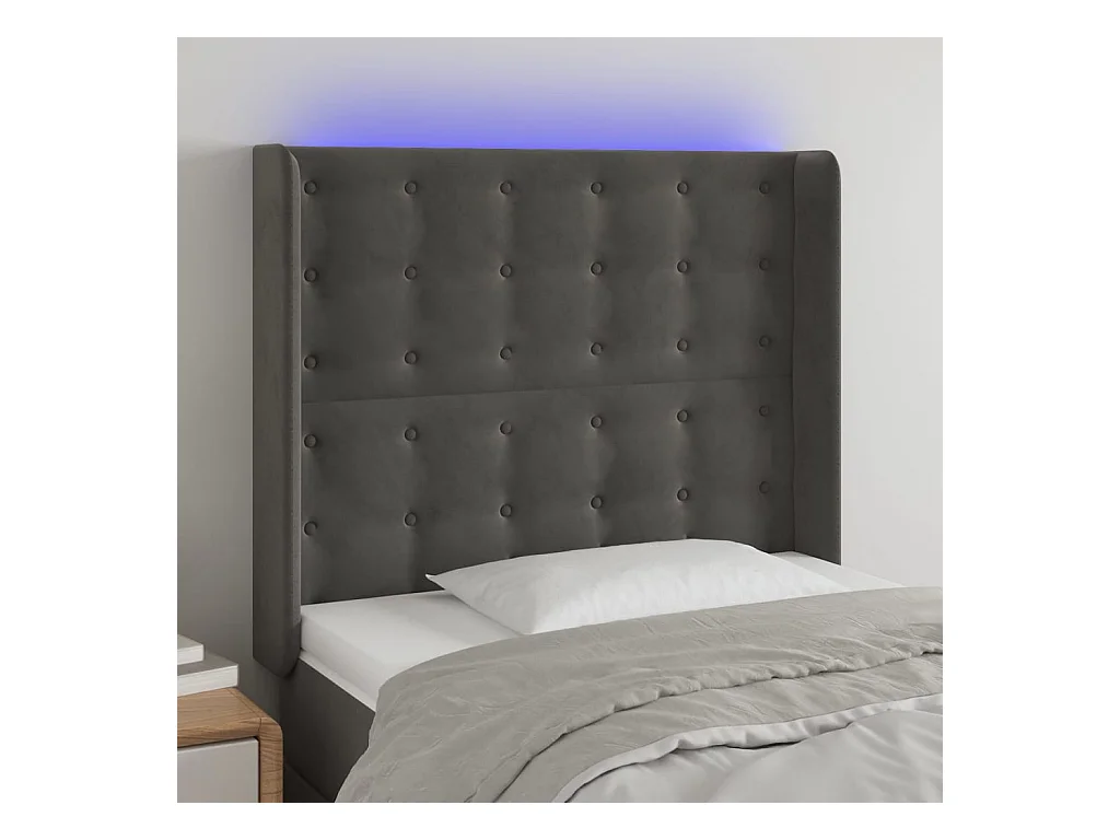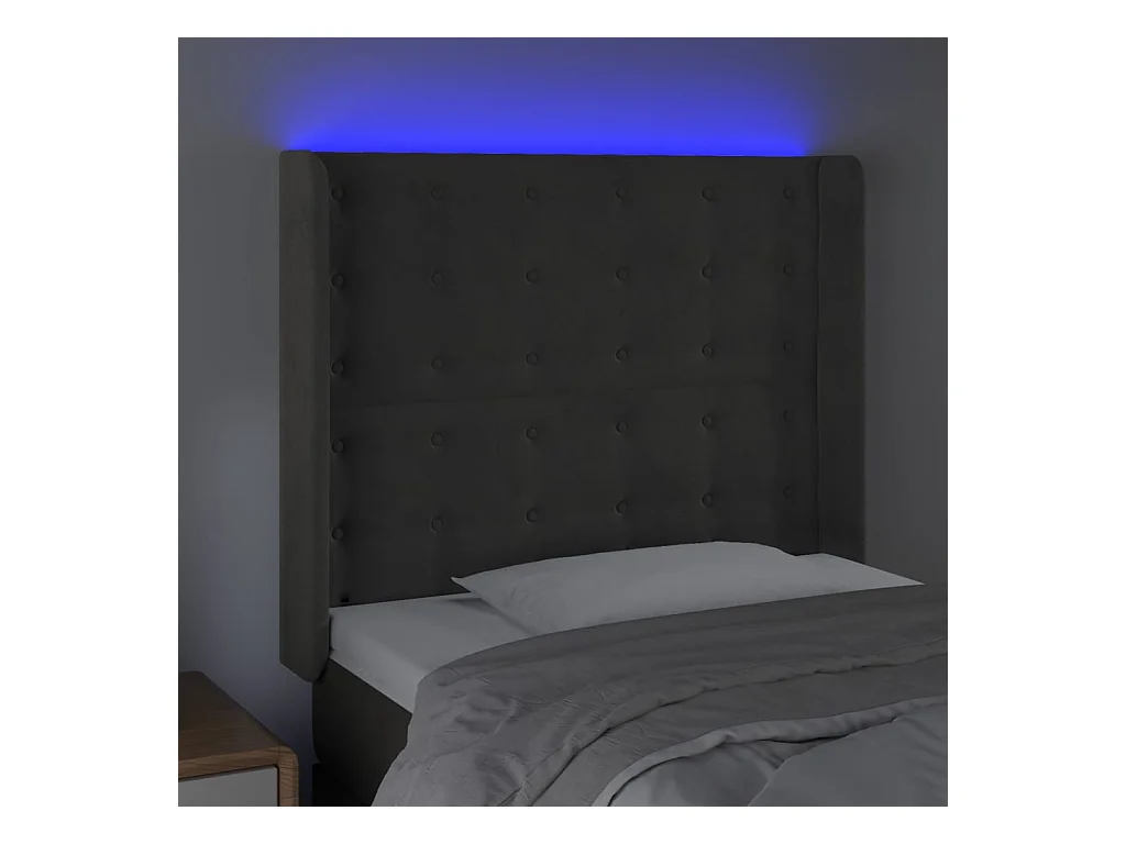 LED Hoofdbord Donkergrijs 93x16x118/128 cm Fluweel