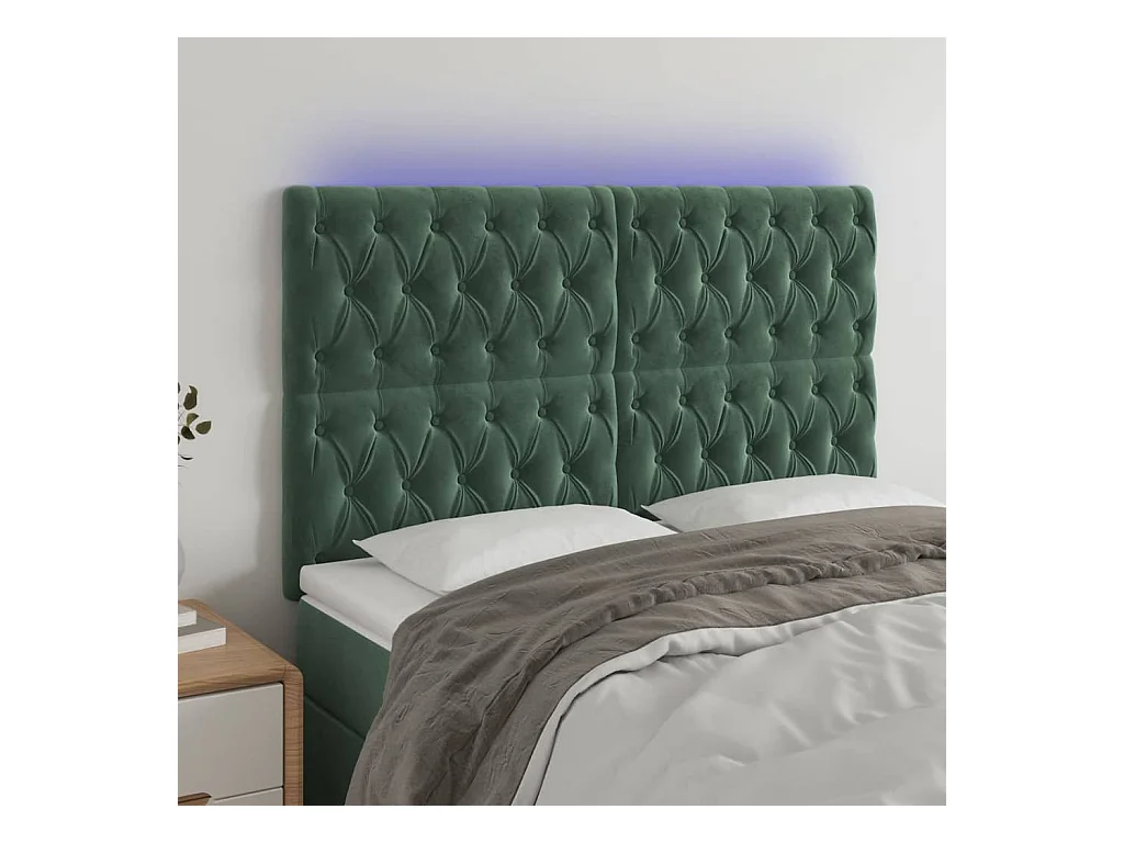 LED Hoofdbord Donkergroen 144x7x118/128 cm Fluweel
