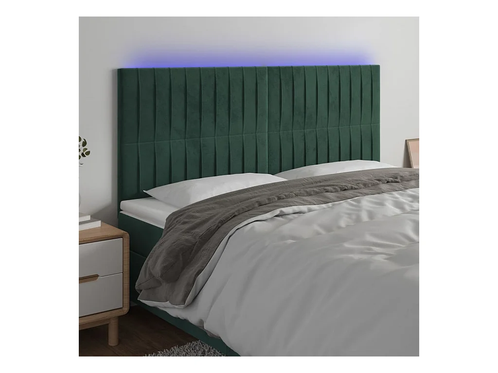 LED Hoofdbord Donkergroen 180x5x118/128 cm Fluweel