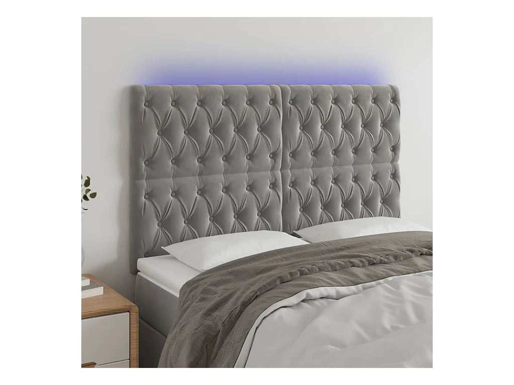 LED Hoofdbord Lichtgrijs 144x7x78/88 cm Fluweel