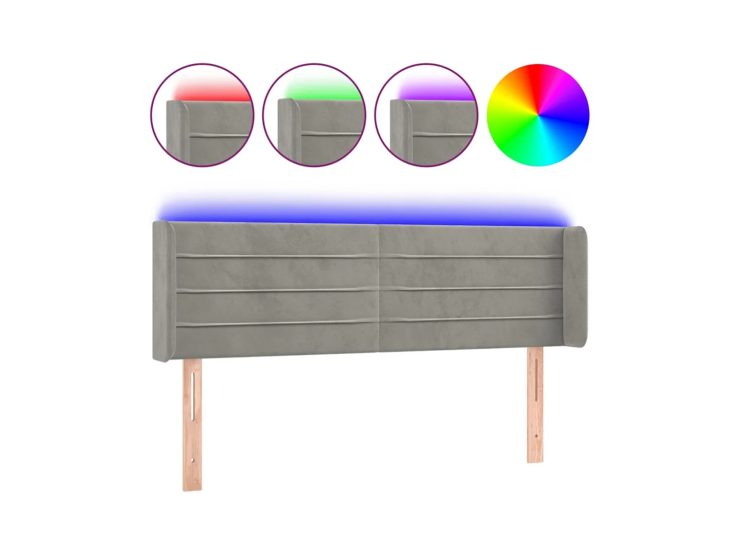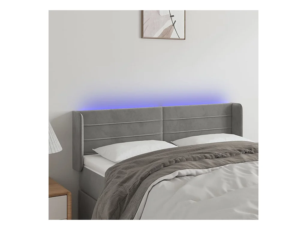 LED Hoofdbord Lichtgrijs 147x16x78/88 cm Fluweel