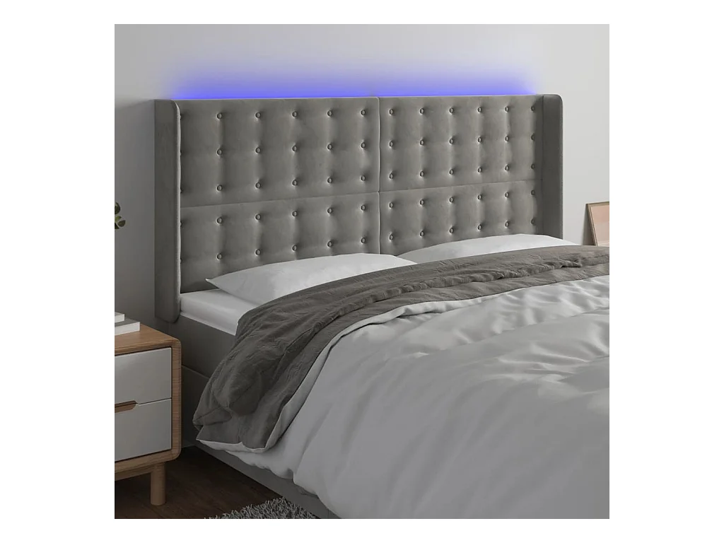 LED Hoofdbord Lichtgrijs 203x16x118/128 cm Fluweel