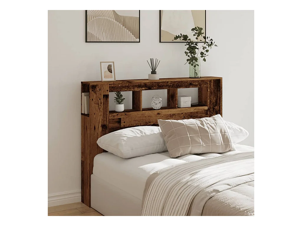 Gerookt eiken LED hoofdbord 140x18,5x103,5cm bewerkt hout
