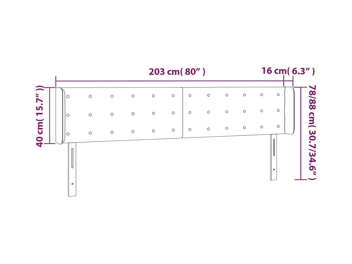 LED Hoofdbord Wit 203x16x78/88 cm Kunstleer