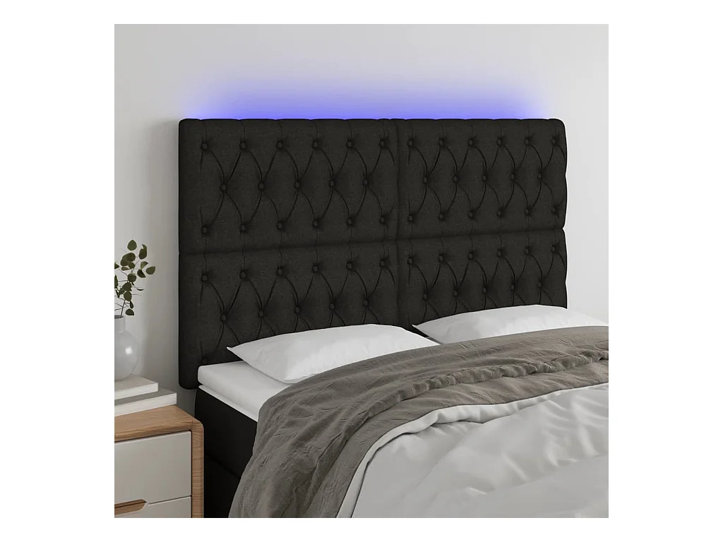 LED hoofdbord Zwart 144x7x118/128 cm Stof