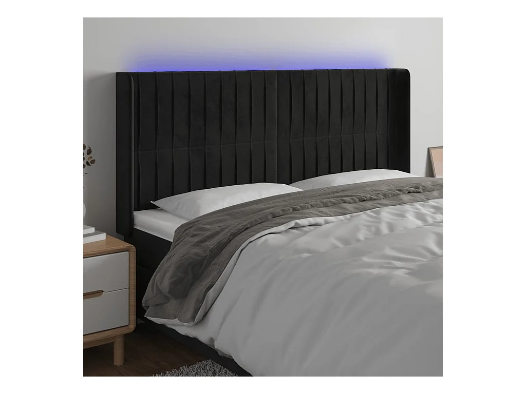 LED Hoofdbord Zwart 163x16x118/128 cm Fluweel