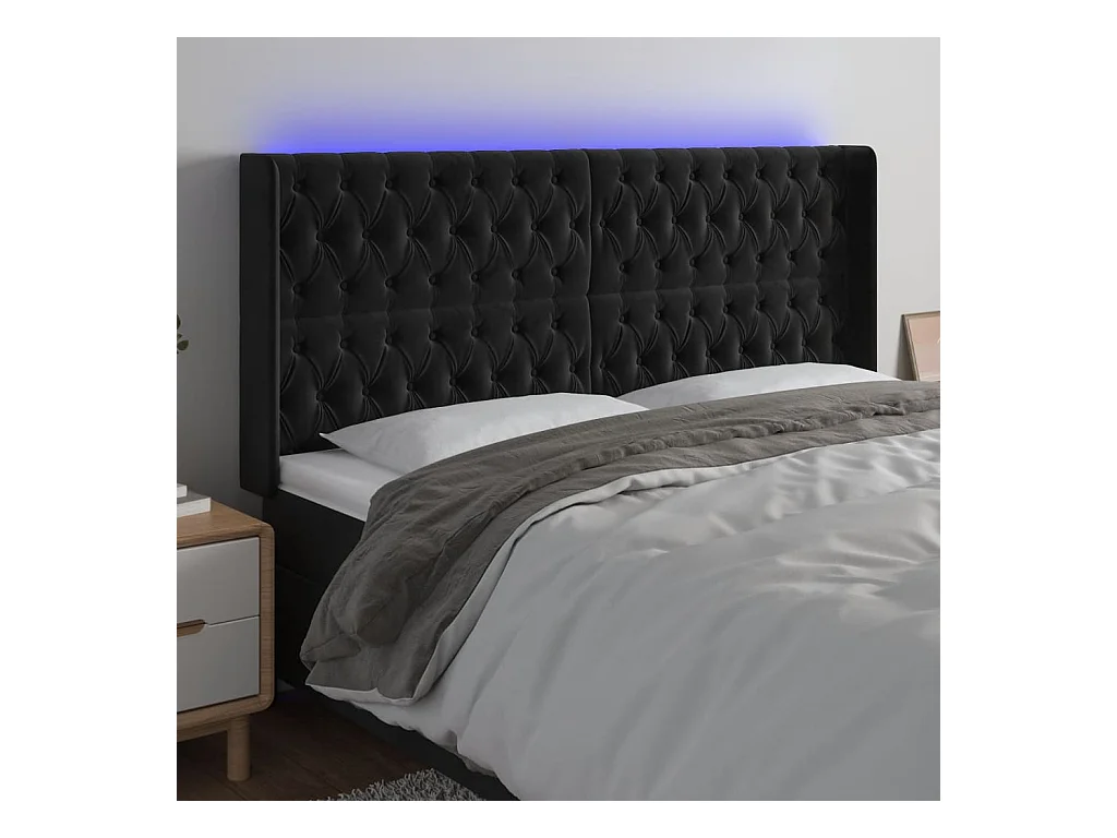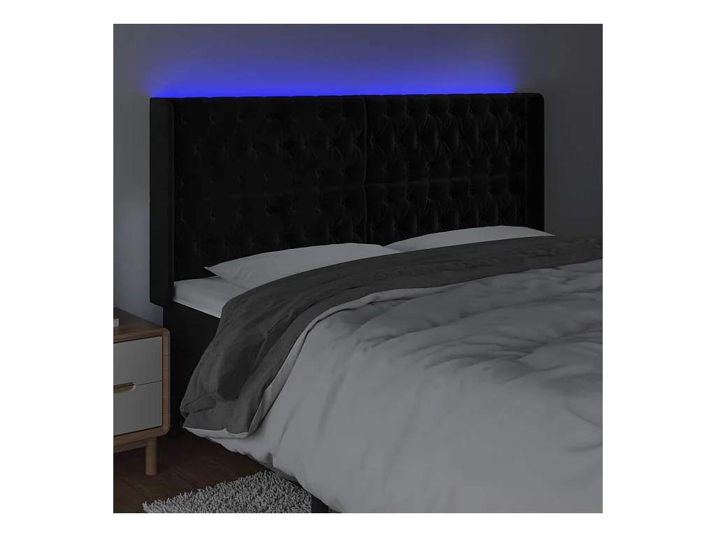 LED Hoofdbord Zwart 203x16x118/128 cm Fluweel