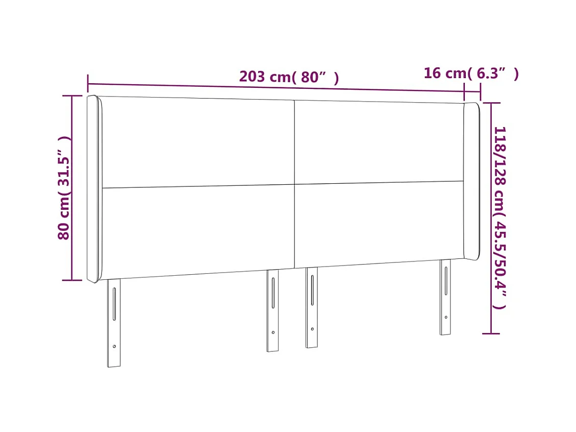 Hoofdbord met vleugels Zwart 203x16x118/128 cm Stof