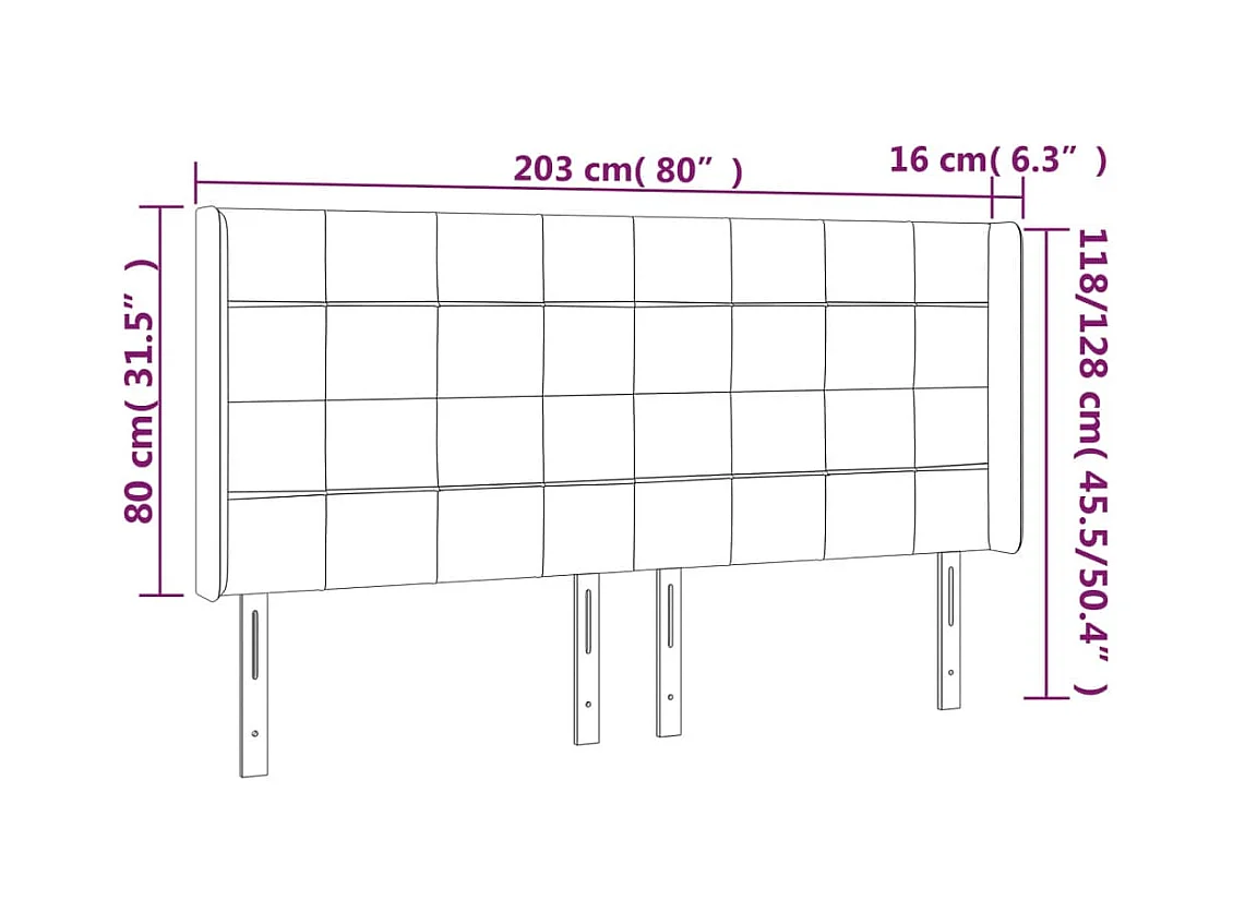 Hoofdbord met vleugels Zwart 203x16x118/128 cm Stof