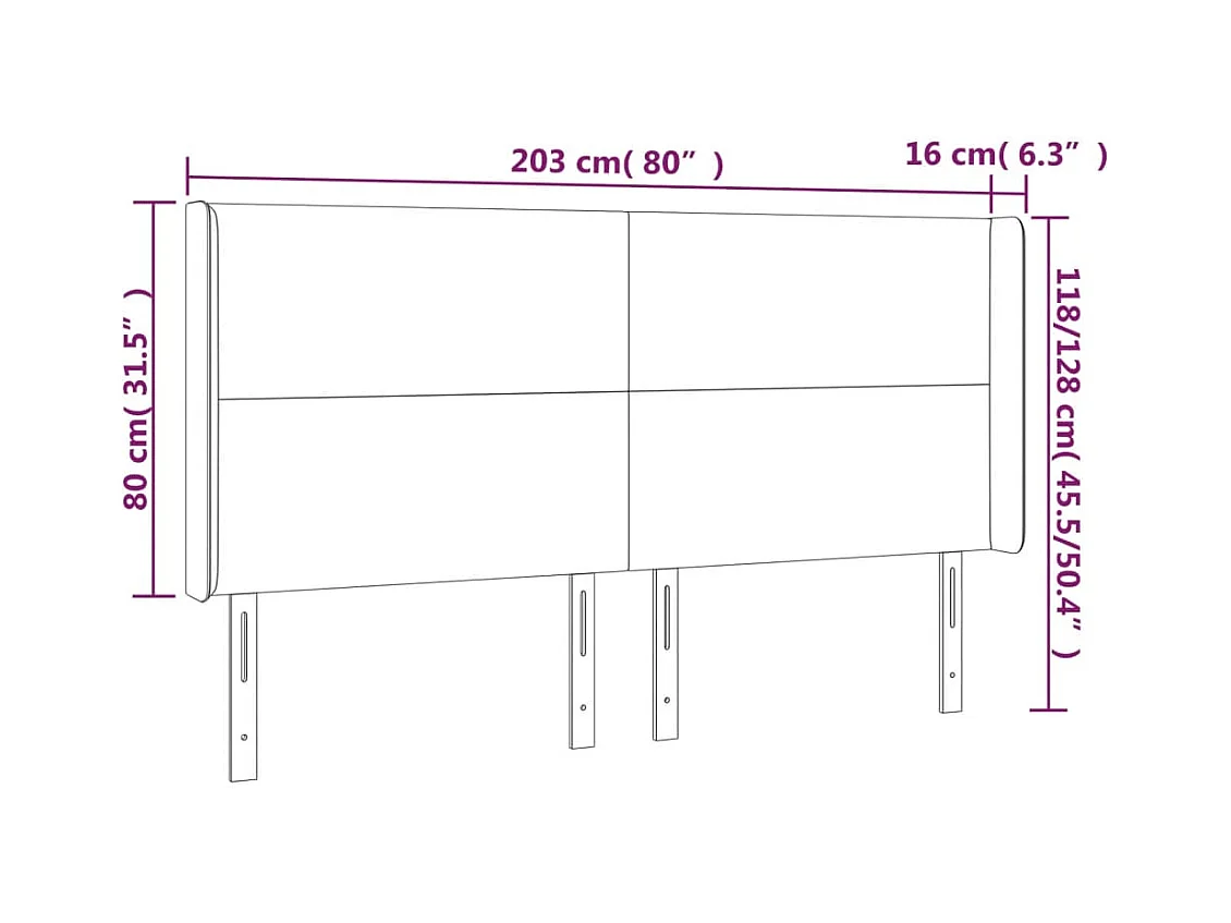 Hoofdbord met vleugels Zwart 203x16x118/128 cm Stof