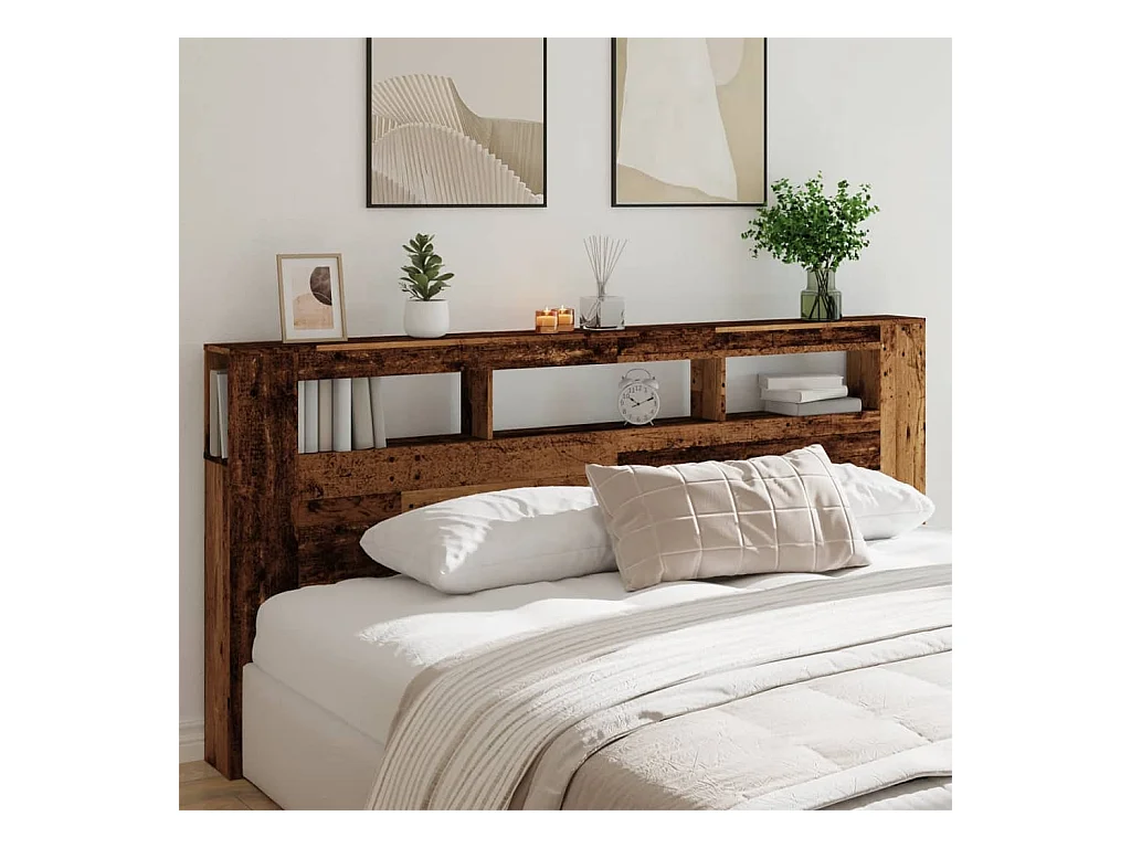Gerookt eiken LED hoofdbord 180x18,5x103,5cm bewerkt hout