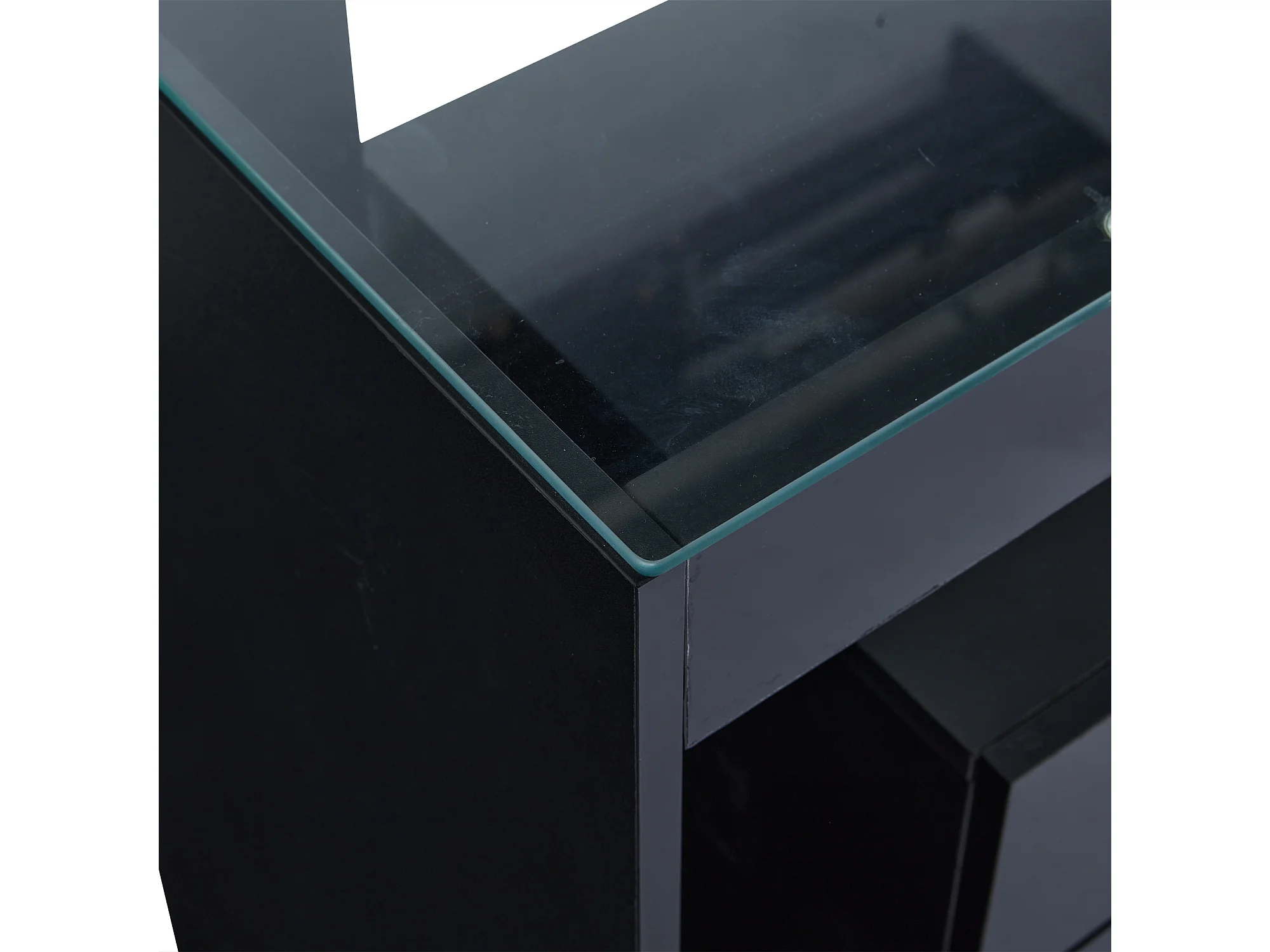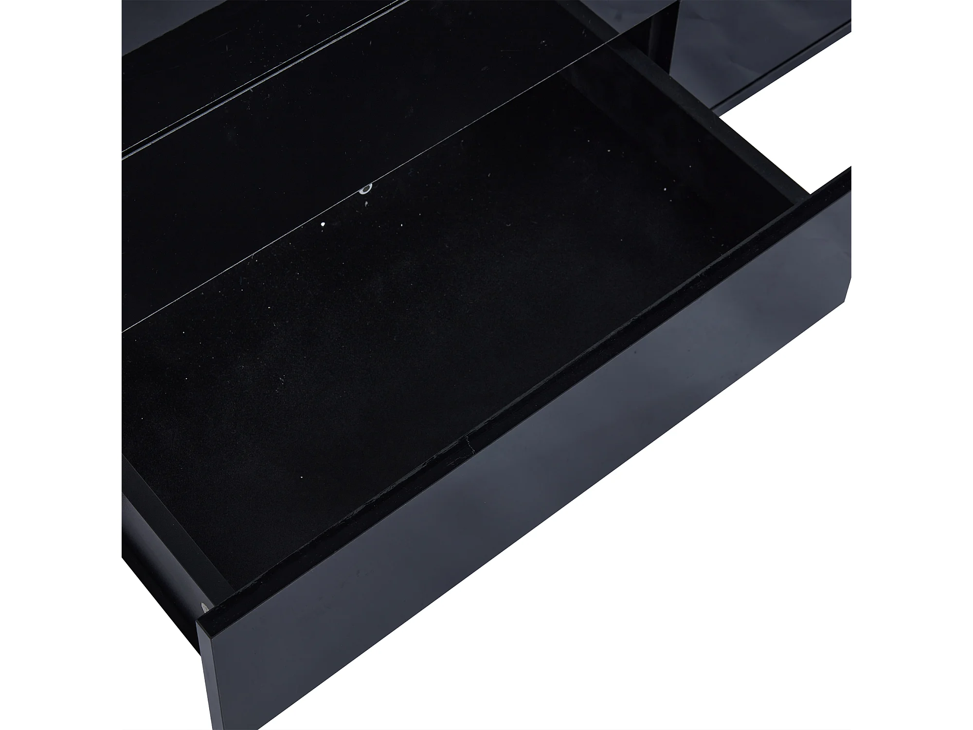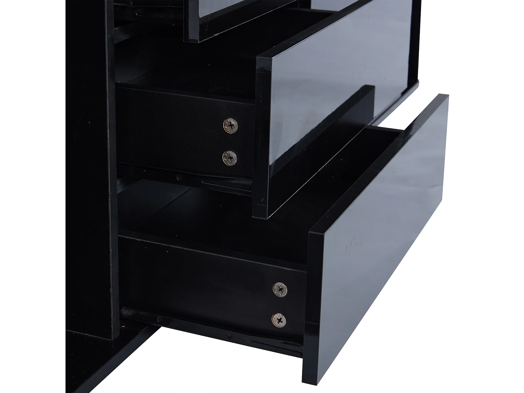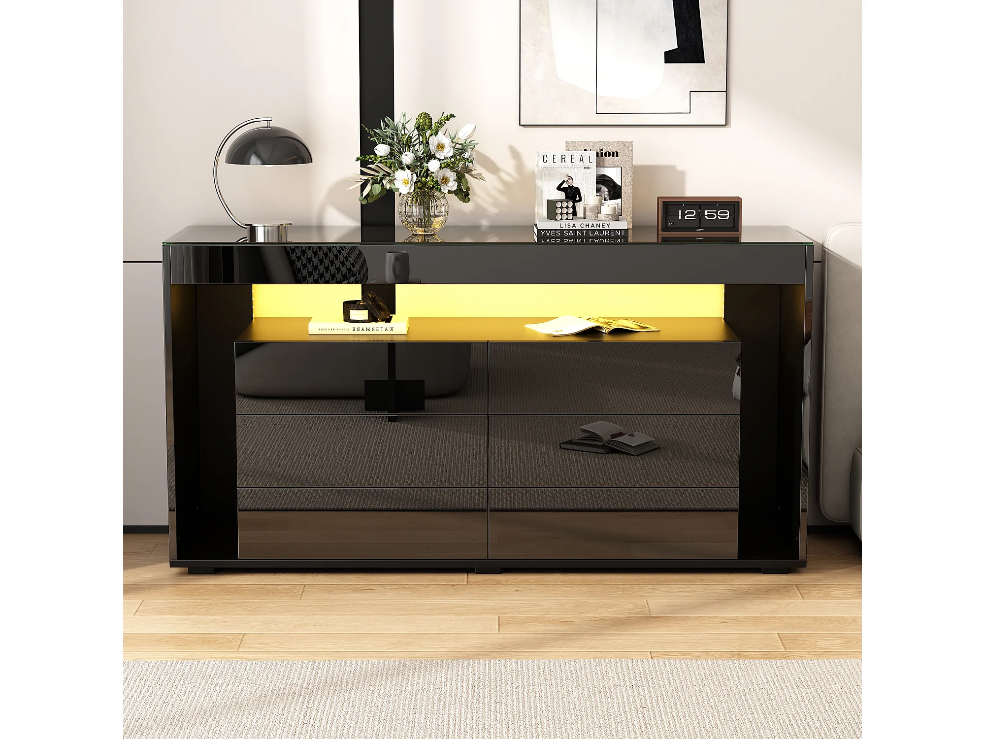 LED houten eetkamer dressoir met 6 laden, houten opbergmeubel - glazen blad - zwart (140x40x72 cm)