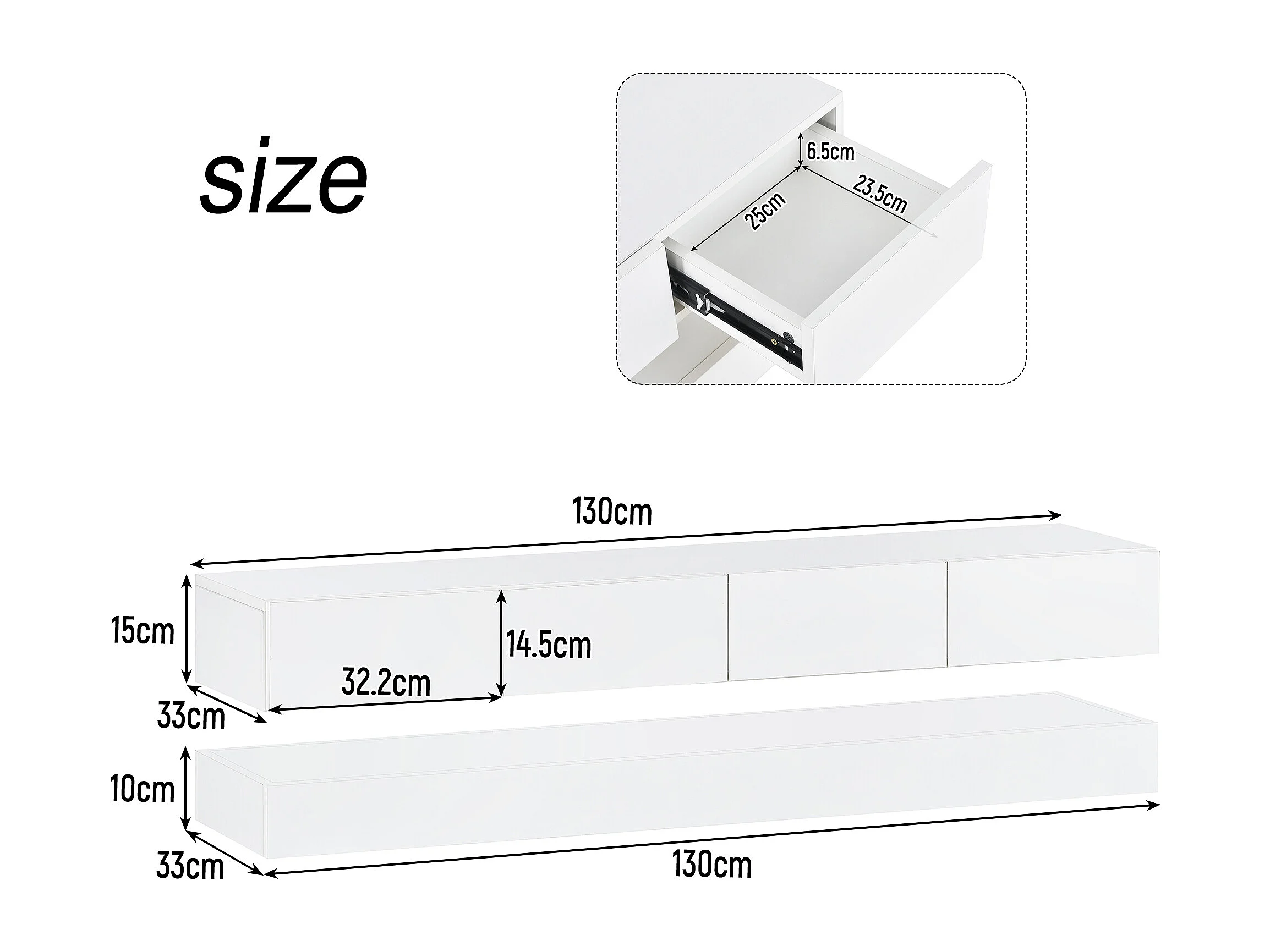 LED TV-meubel voor woonkamer met 2 kasten en 4 lades en open opbergruimte - hout - wit (130x33x15 cm)