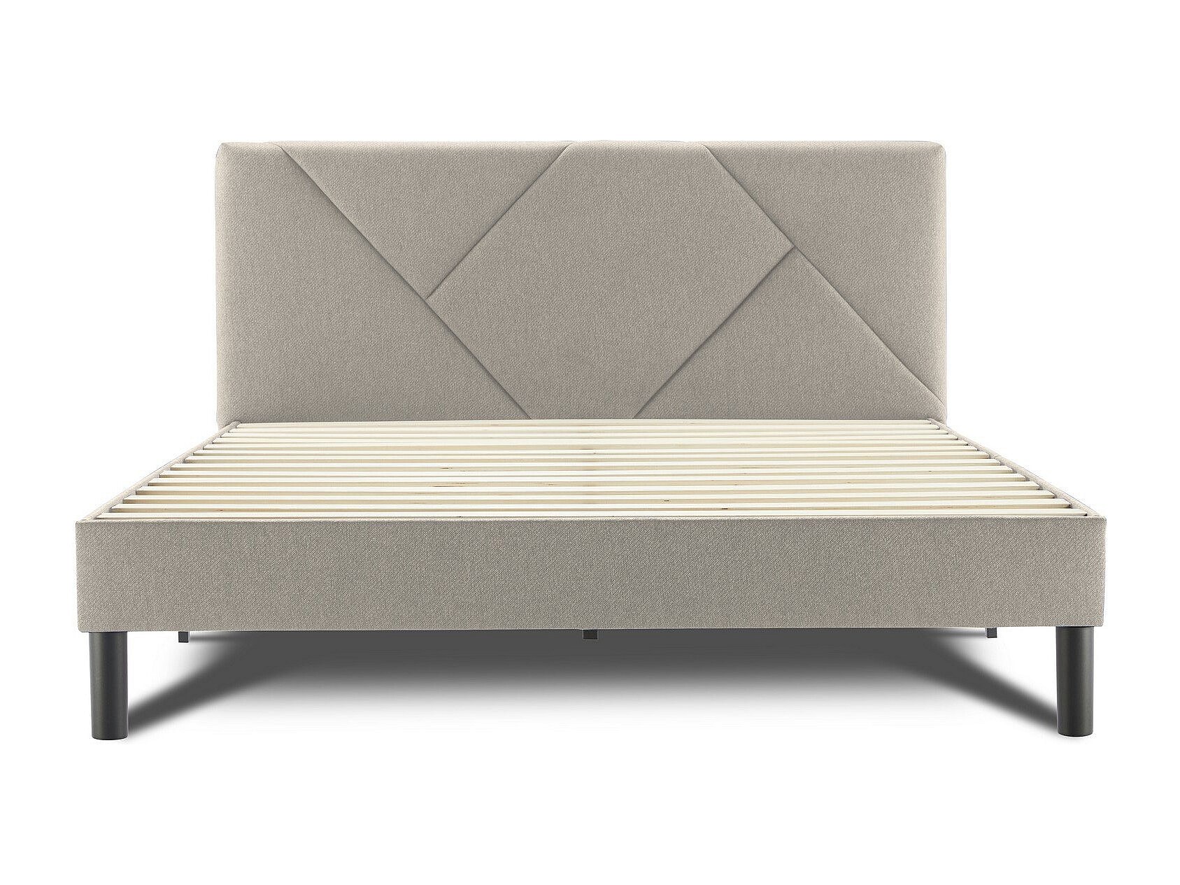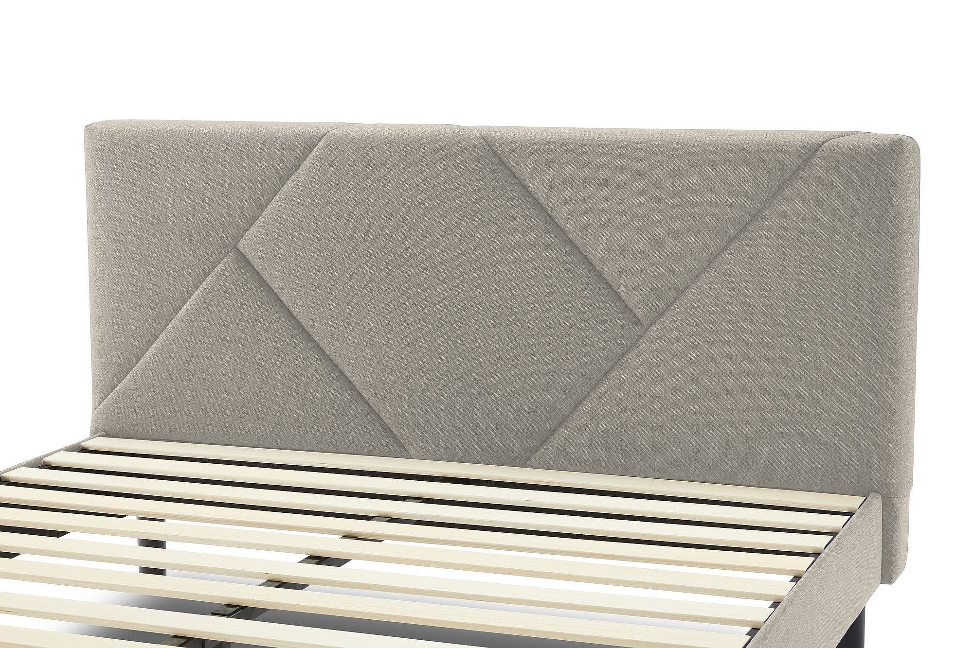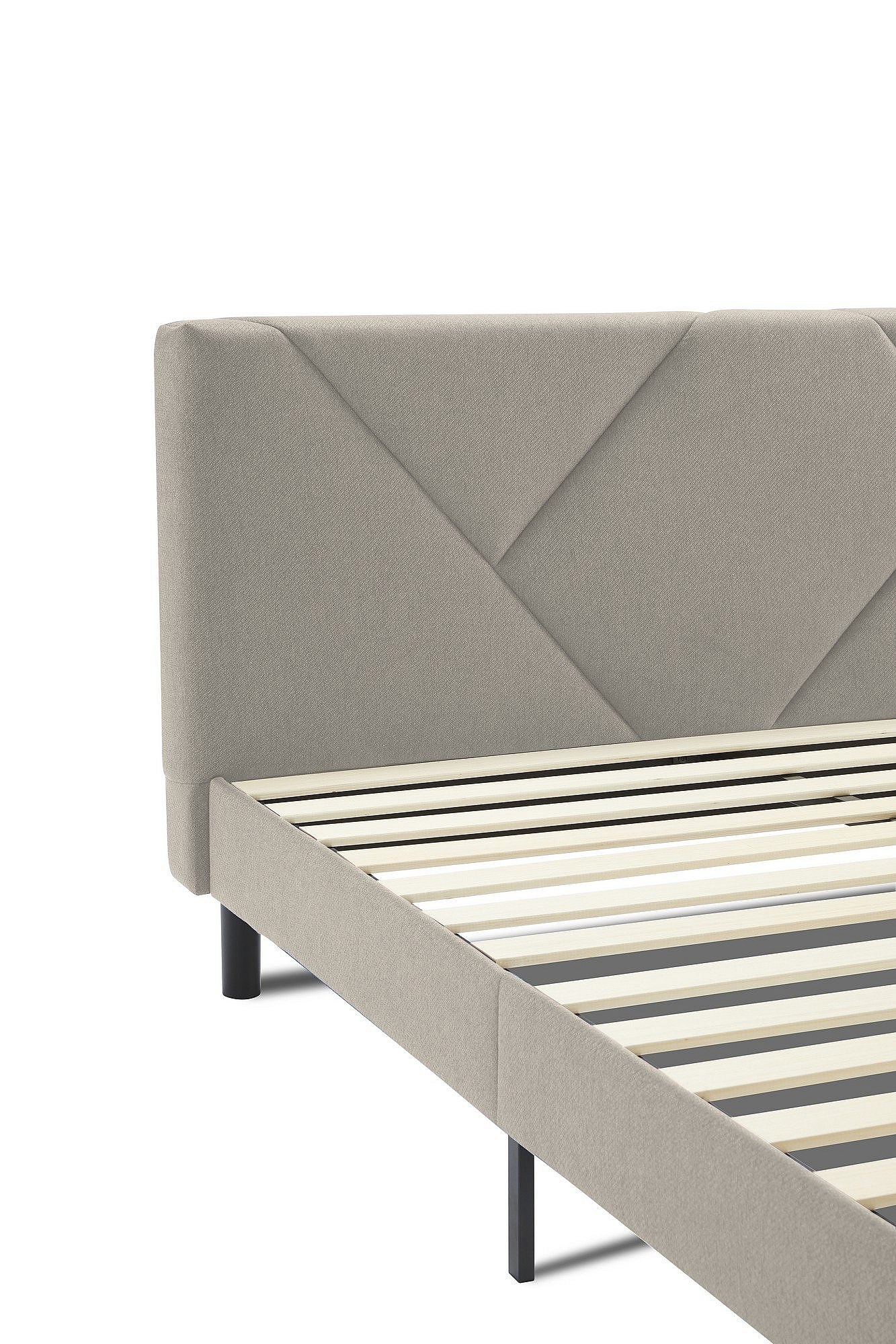 Letto matrimoniale Tirino, Letto imbottito in tessuto con testiera, Doghe in legno, adatto a materasso da 160x200, Tortora