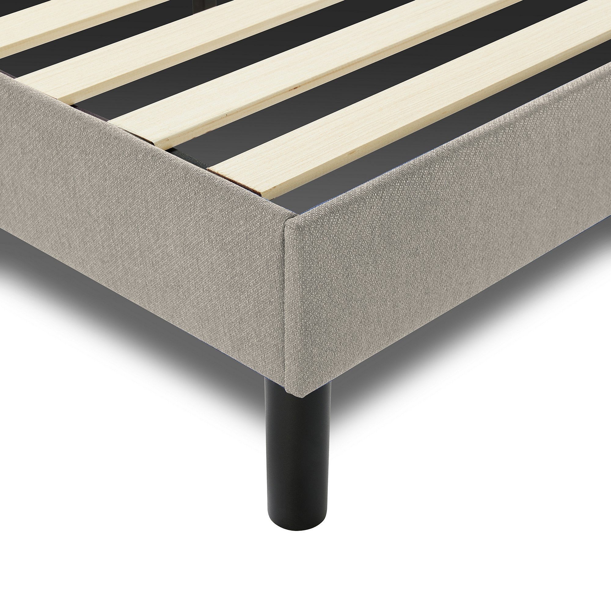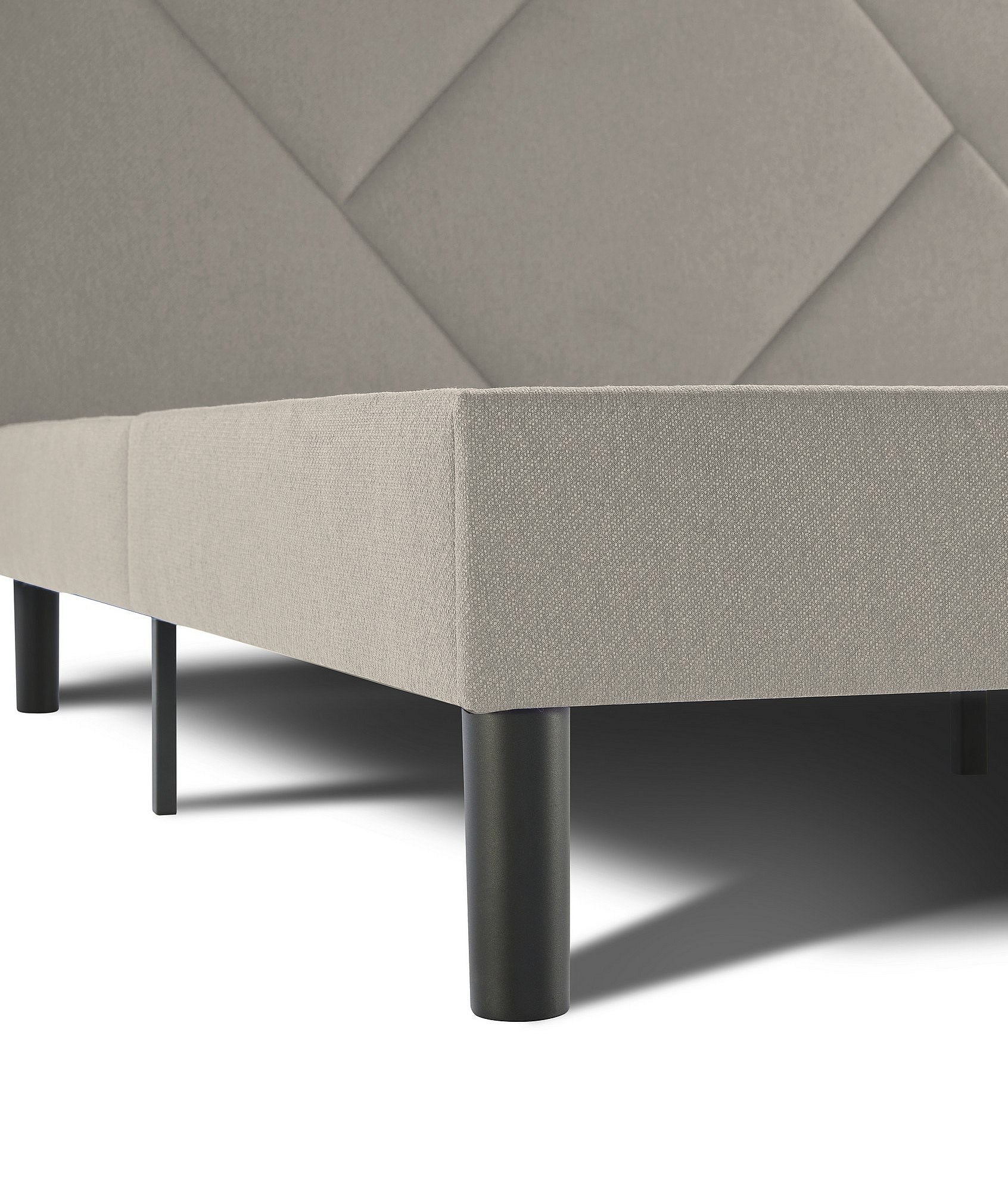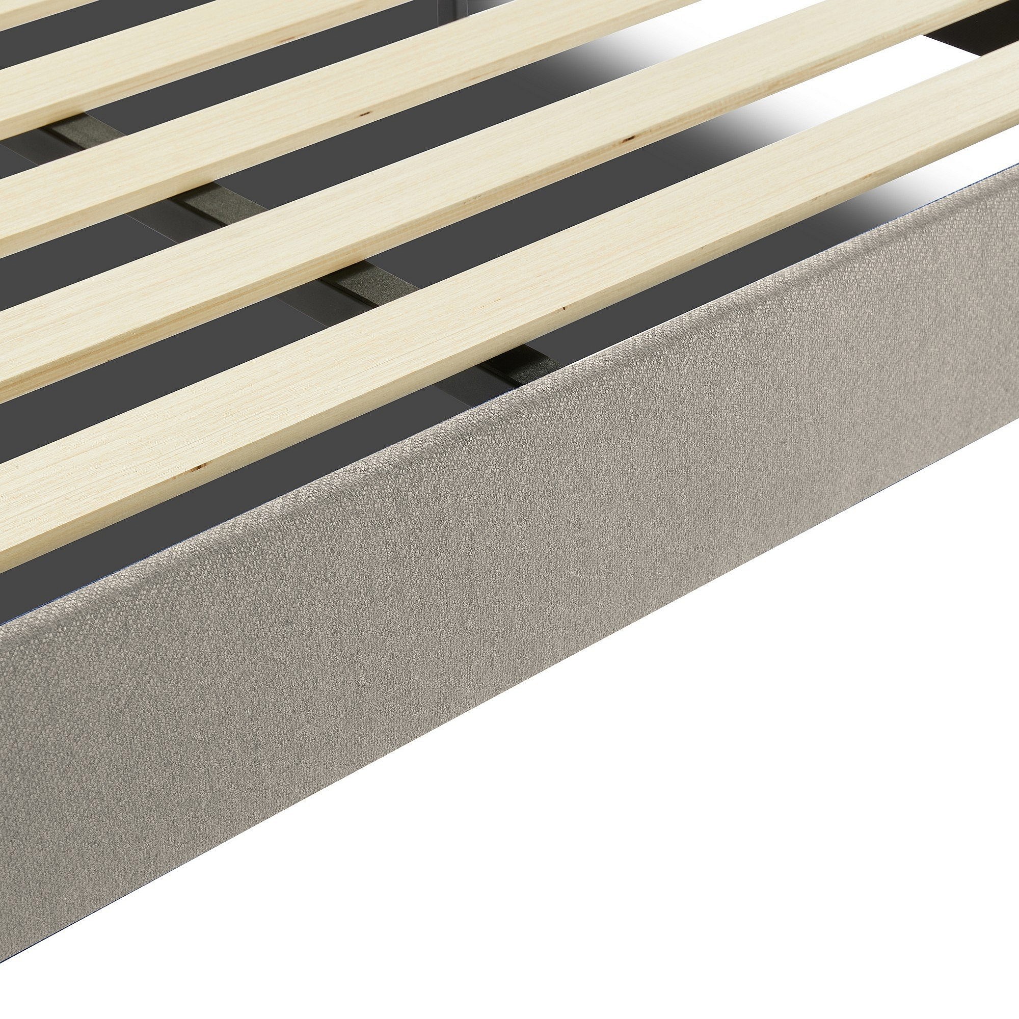 Letto matrimoniale Tirino, Letto imbottito in tessuto con testiera, Doghe in legno, adatto a materasso da 160x200, Tortora
