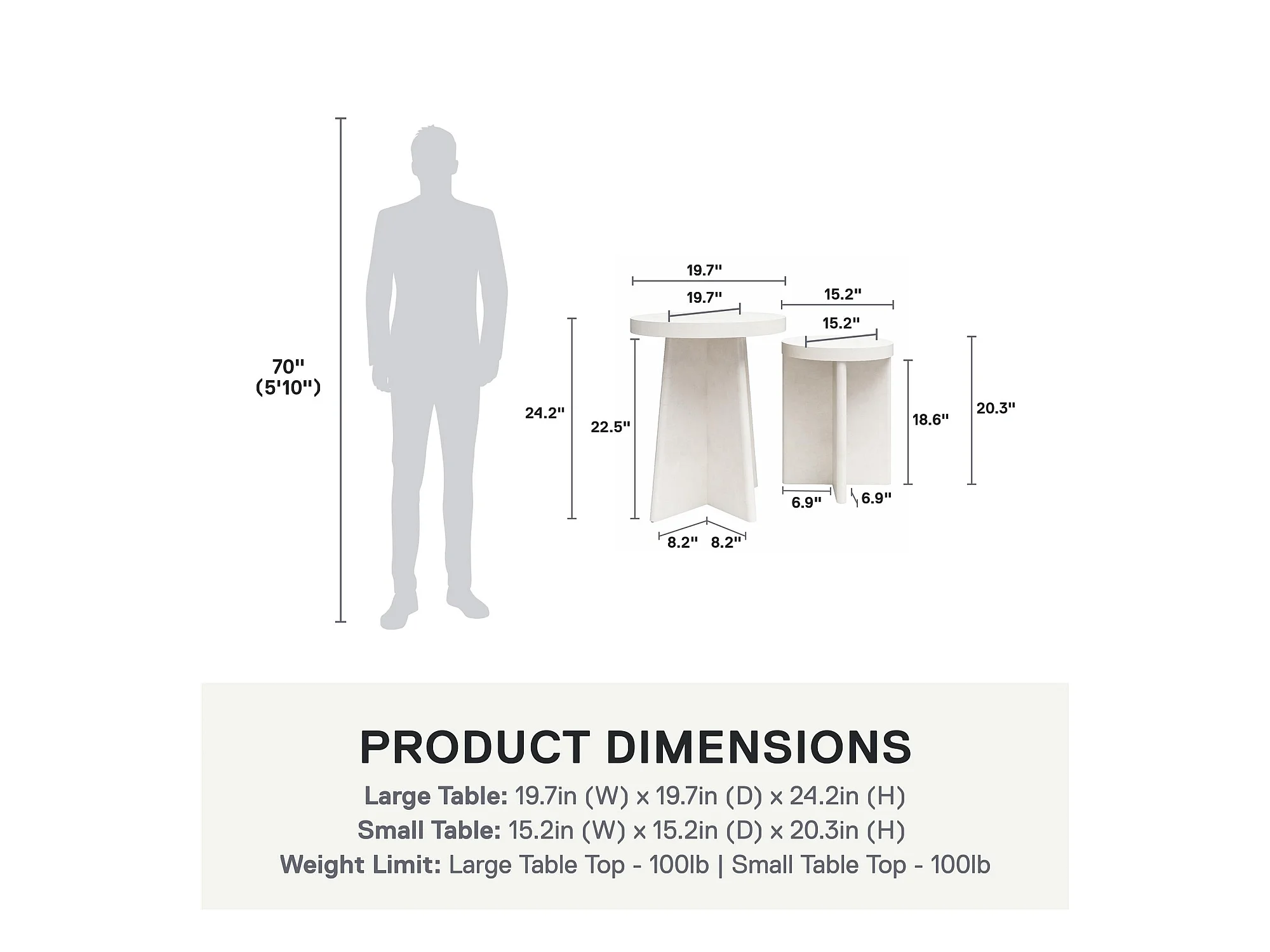 Liam | Eindtafelset van 2 in Crèmekleurige Gipslook