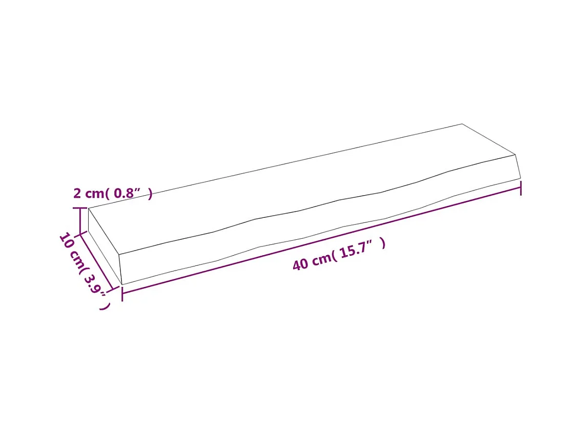 Donkerbruine wandplank 40x10x2 cm massief behandeld eikenhout