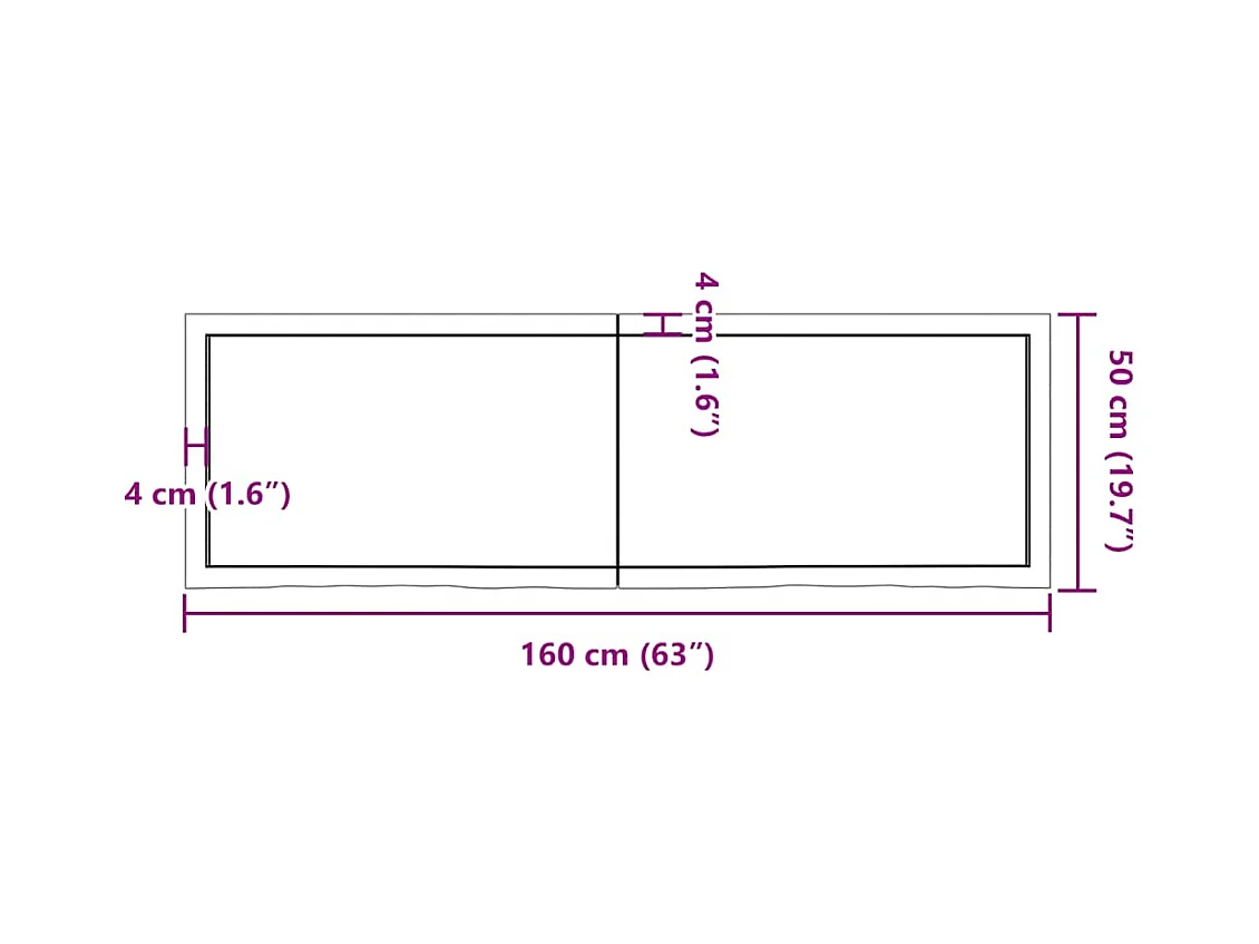 Wandplank 60x50x2 cm onbehandeld massief eikenhout