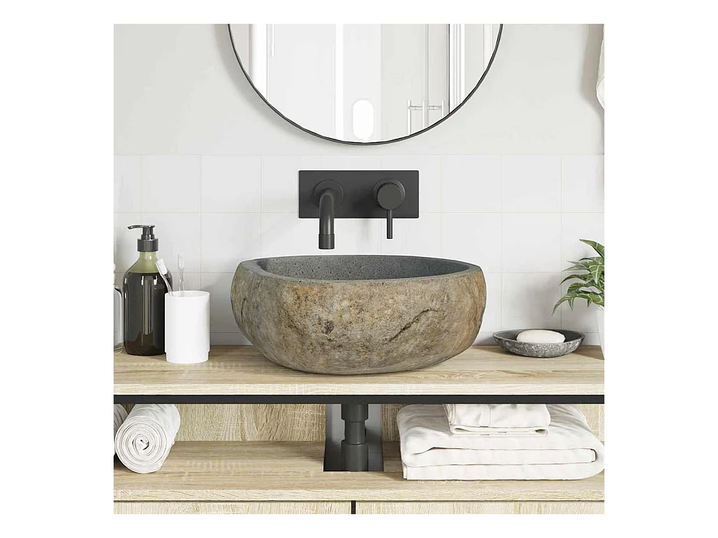 Lichtgrijze kom (38-45) x (30-35) x 15 cm riviersteen