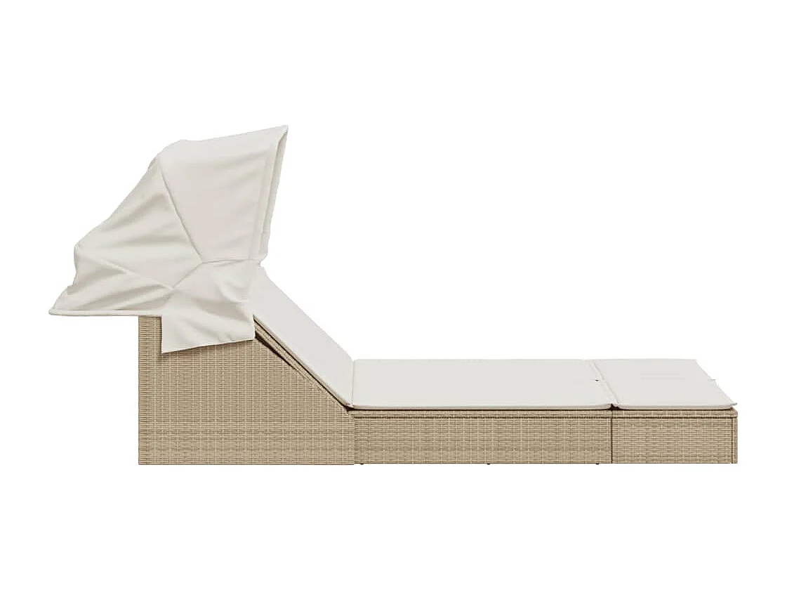 Ligbed 2-persoons met luifel en kussens poly rattan beige