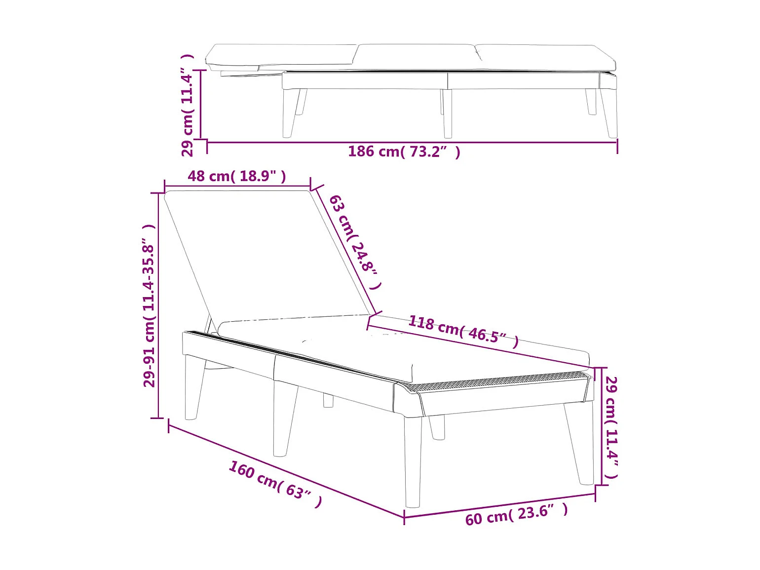 Ligbed met kussen 186x60x29 cm polypropeen antracietkleurig