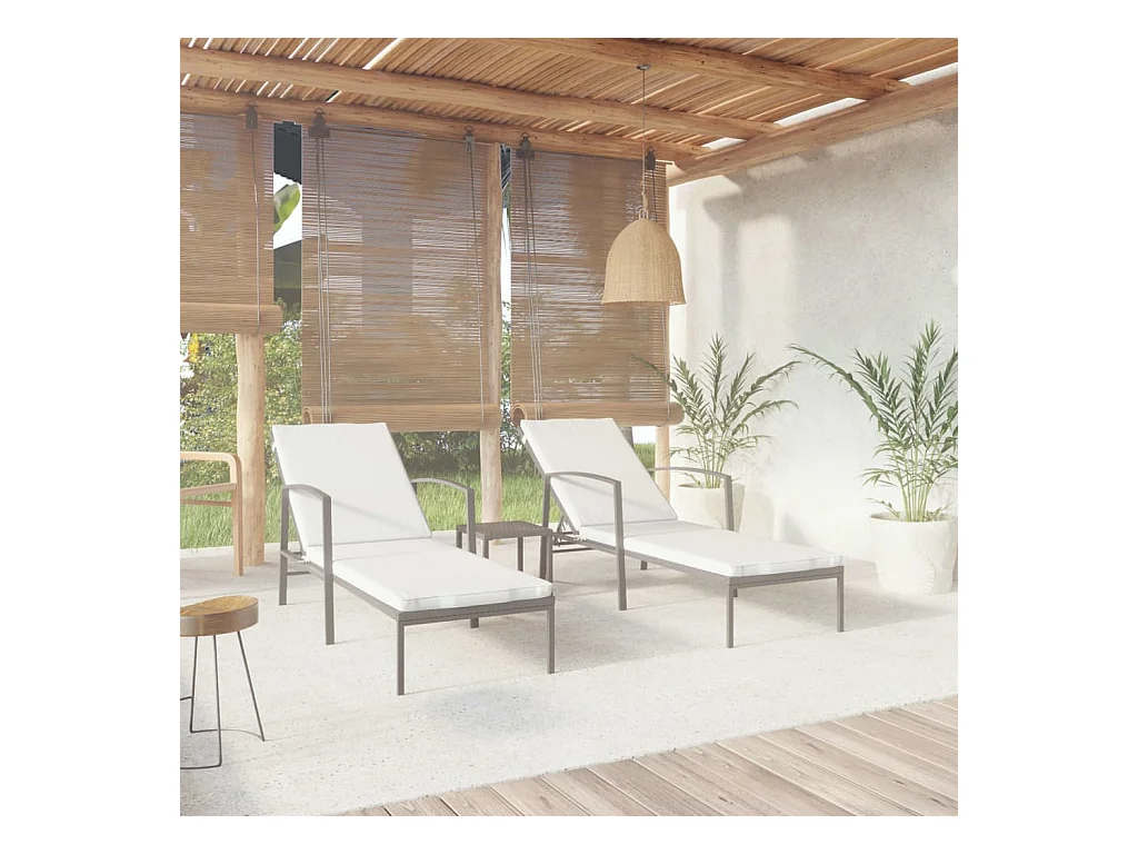 Ligbedden 2 st met tafel poly rattan zwart
