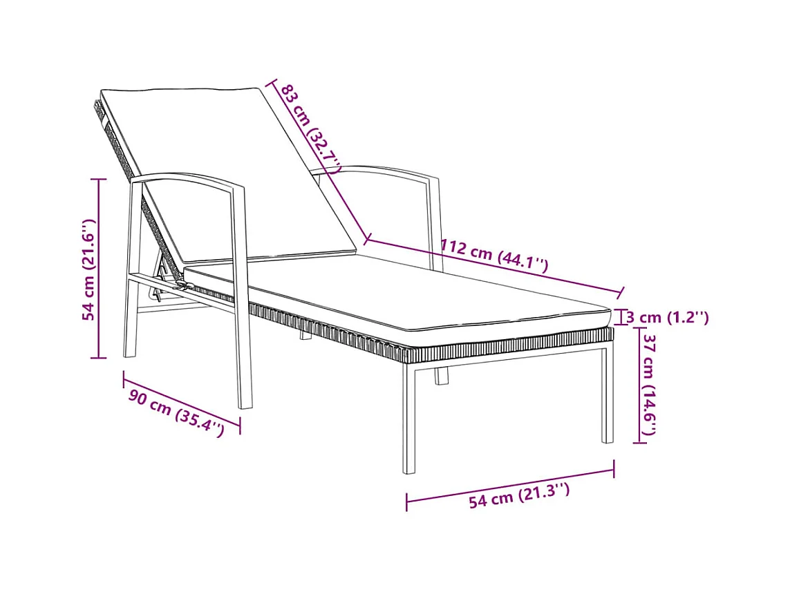 Tuinbed 195x60 cm poly rattan zwart