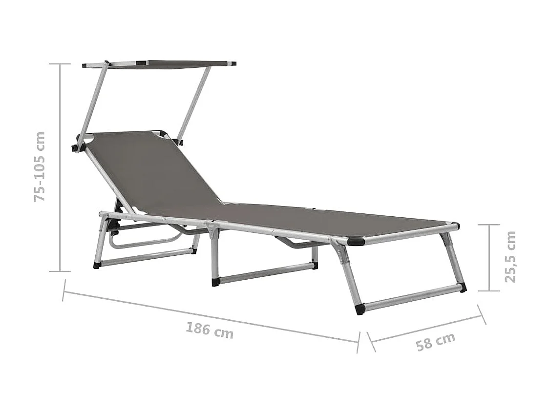 Ligbedden inklapbaar met dak 2 st aluminium en textileen grijs