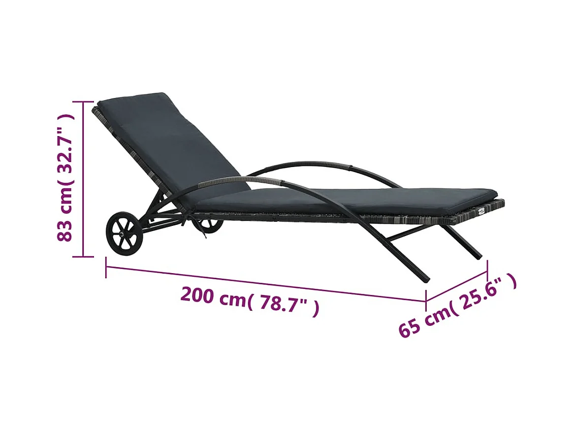 Ligbed met inklapbaar dak 213x63x97 cm poly rattan grijs