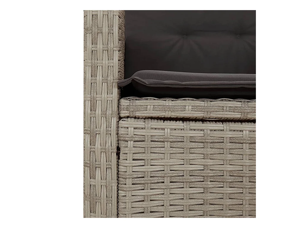 Liggende tuinbank en kussens van lichtgrijs geweven hars