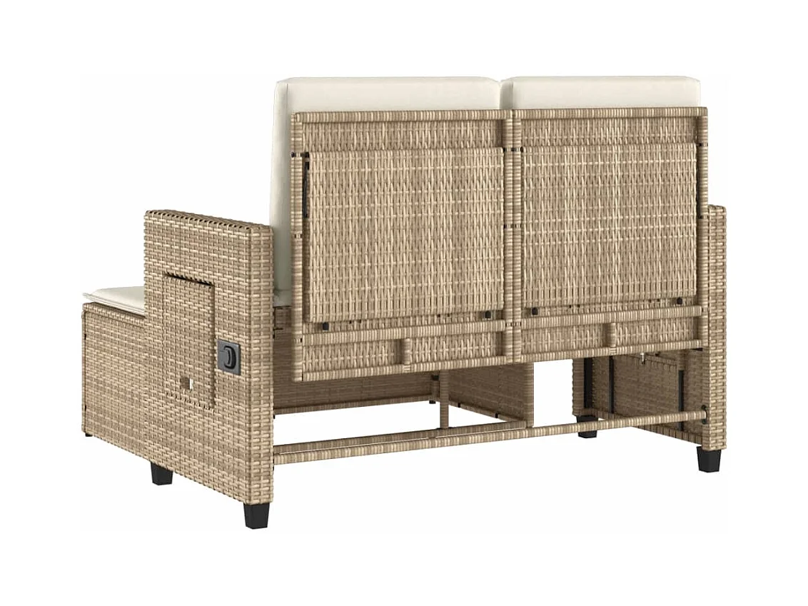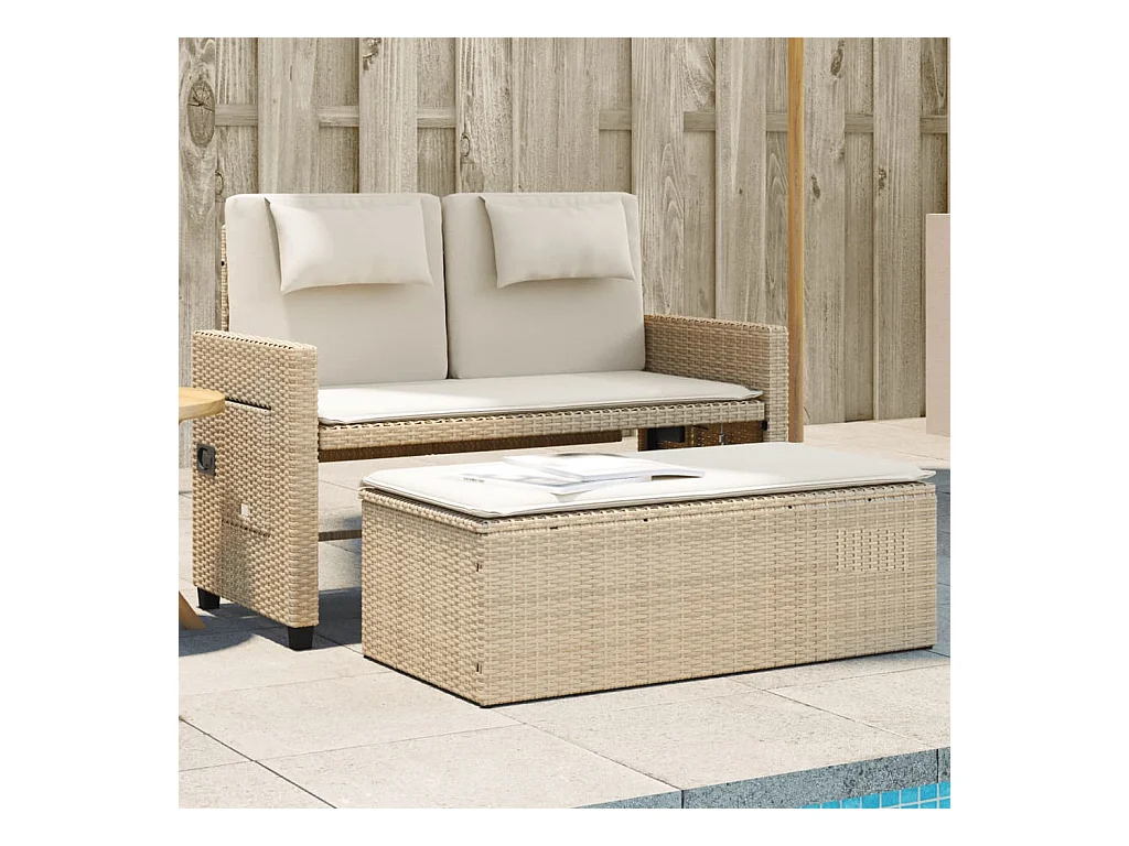 Tuinbank met kussens en beige gevlochten hars voetenbankje
